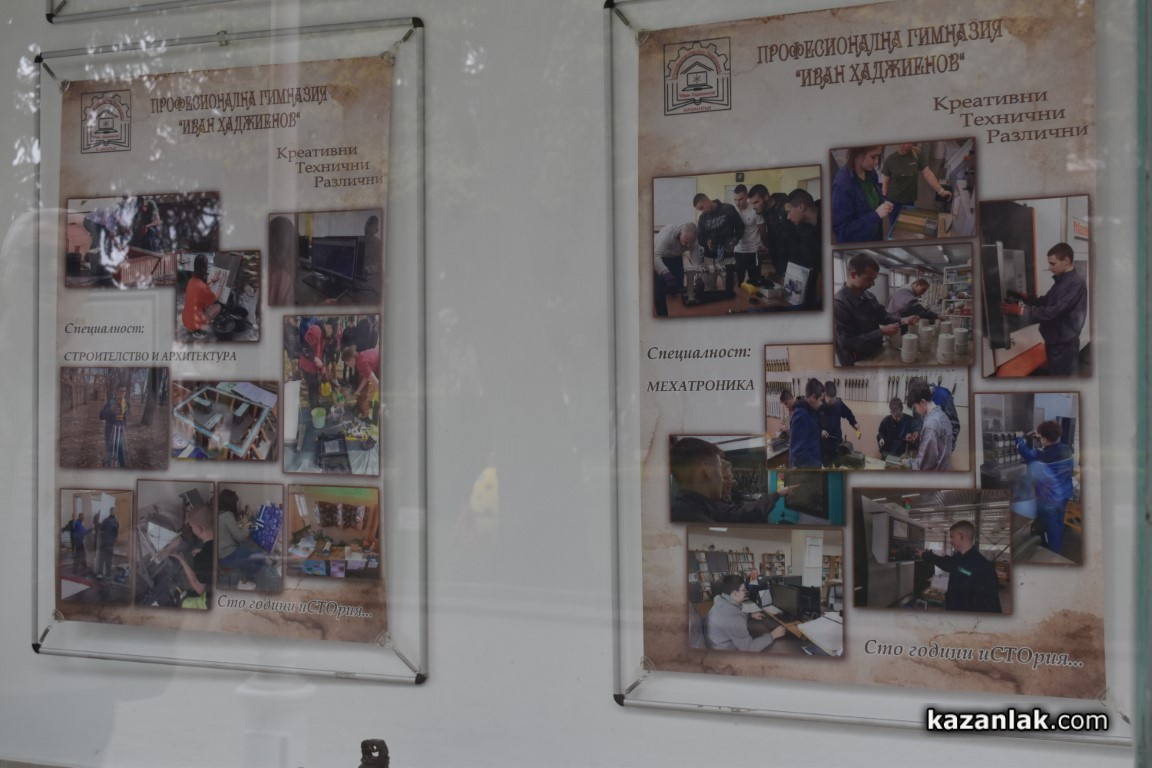 Днес в зала "Иван Милев" бе открита изложбата "100 години история на ПГ "Иван Хаджиенов". Изложбата представлява своеобразно пътешествие от миналото към настоящето представяща директорите през годините, сградния фонд и учителски колективи, преподавателите и настоящите специалности в гимназията. Красивата изложба, която е достъпна за казанлъчани на витрината на Инфо центъра на площада в Казанлък, разказва дълголетна история подплатена с труд и усърдия, за да могат възпитаниците на Механото гордо да носят своето призвание за креативни, технични и различни.