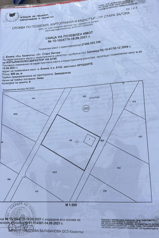 Романтична Вила с 600 кв Двор. Парцел във Вилна Зона ”Старите Лозя” на Енина и Казанлък Романтична малка къща, разположена в най-живописния квартал на Тюлбето от енинската страна. Дворът е 600 кв.м. и разполага с външна тоалетна. Квартала попада във вилна зона Енина, но е близо до Старите Лозя, Татарска могила както и квартал Крушките. Вилата е в края на квартала с невероятна гледка към Балкана, село Енина, Долно Изворово, Горно Изворово както и към ливадите и земеделските земи по между им. В близост живеят трима съседи и в районя няма набези. Бунгалото е на два етажа, състоящо се от стая с бокс на партерно ниво и мансарден етаж на второ ниво с вътрешна стълба. Вилата е с масивен бетонен фундамент и основата и е 50 см над земята. Къщата има складово помещение от северна страна. Достъпа до имота е посредством лесно проходим черен път. Ток до дворното място все още няма, но скоро се очаква да дойде и до там. На мястото има стар кладенец / сонда за вода. Този недвижим имот се отличава с невероятната си панорамна гледка и се намира в близост до високи, зелени тополи и е заобиколен от много красива природа, зелени тучни ливади и изящна гледка за милиони. Вилата е напълно законно построена от инжинер, притежаваща всички строителни книжа и архитектурни проекти за времето си, които ще получите като част от покупката си. Капаро за вилата е 200 лв и сделката на покупко-продажба ще стане до 7 дни. Имотът и парцела притежават нотариален акт, скица и данъчна оценка. Обадете се днес за оглед или да ви пратим локация за да видите имота сами.