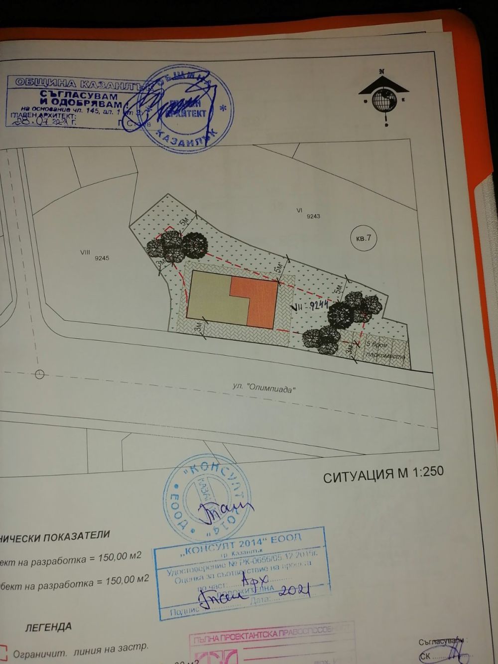Описание на имота: Имоти Казанлък SDN Estates LTD продава УПИ в местност ”Старите лозя” С площ от 851 кв.м. и 46 м. лице на ул. ”Олимпияда” - Източно от хотел Зорница.