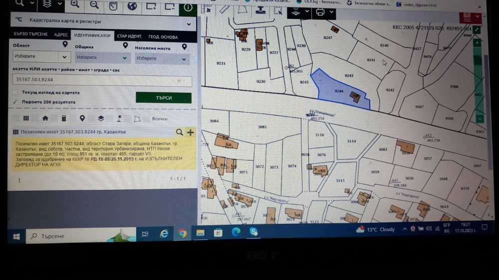 Продава Парцел строителство Парцел в гр.Казанлък 210960 EUR