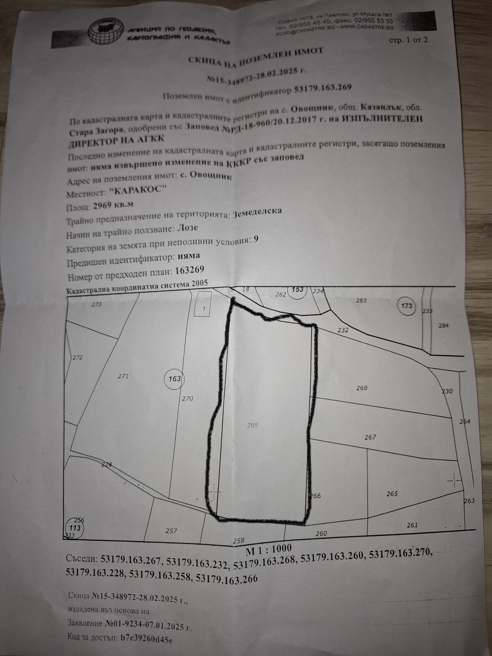 Продавам поземлен имот Продавам поземлен имот с.Овощни местностКаракос с площ 2969кв.м. Има нов наториален акт и скица и платен данък . Начин на ползване ЛОЗЕ. Стига сепо черен път. Има красива гледка, намира се на 1км от двете бензиностанции LUKOIL. Цена 45000лв. Телефон 0896758052 . Цена подоговаряне