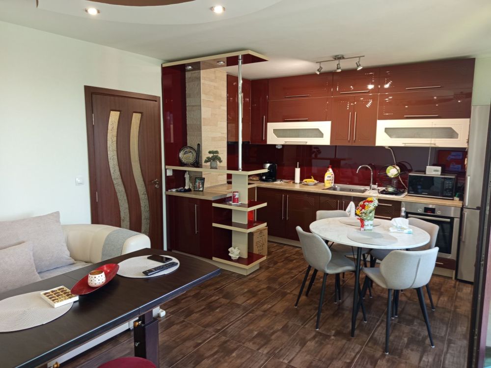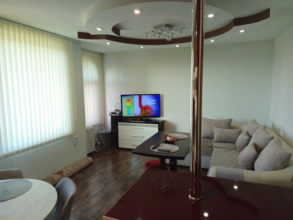 Описание на имота: Имоти Казанлък SDN Estates LTD предлага за продажба напълно обзаведен апартамент с една спалня, разположен в новопостроена сграда в самия център на гр. Казанлък. Имотът се намира на изключително комуникативно място – в непосредствена близост до пешеходната зона, магазини, ресторанти, културни забележителности и административни сгради. Площта на имотът е 75 кв.м. и има следното разпределение: просторна всекидневна с кухня и трапезария, една спалня, баня с тоалетна и тераса.