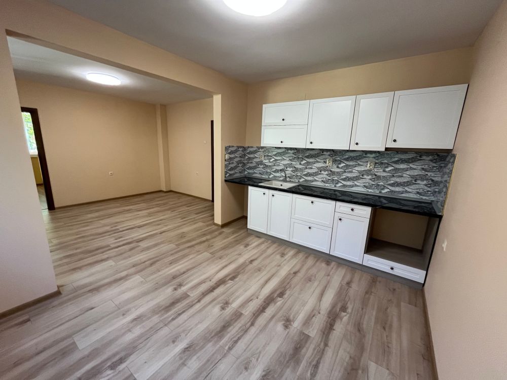 Жилището е след основен ремонт и е напълно готово за обзавеждане и нанасяне. Състои се от просторна всекидневна с кухненски бокс, две самостоятелни спални, новоизградена баня с тоалетна и тераса. Апартаментът е с PVC дограма и обновени настилки, което осигурява комфорт и удобство.