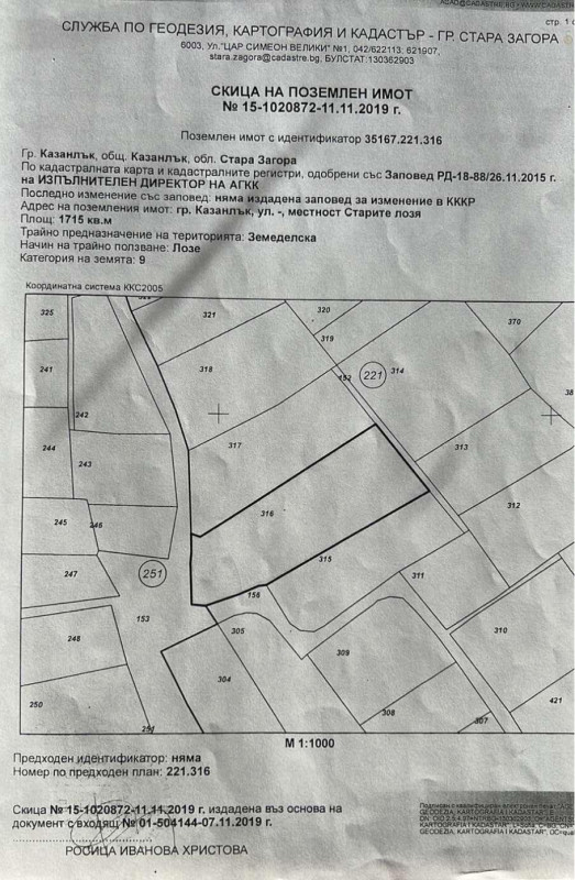 2 Тухлени Къщи с Двор 3 дка в Казанлък, Вилна Зона "Тюлбето" и "Старите Лозя" Два парцела един до друг с ДВЕ тухлени къщи в тях. Единият имот е с кадастрален номер: 35167.221.316 и площ 1715 кв.м. Другият парцел е с номер: 35167.221.317 с площ: 1281 кв.м. Във всяко дворно място има тухлена къща. До имотите се стига по калдъръмения път над х-л Зорница. Достига се бариерата на военните и от там е 10 минути с кола. Пътят до имотите е черен и проходим целогодишно. Местата са идеални, защото са големи и равни, с хубава почва. Имат лице на път и много лесен достъп. В квартала живеят целогодишно комшии. Ток и вода все още няма прекарани. В местата има собствен водоизточник - сонда. Капаро за местата е 300 лв и сделката на покупко-продажба ще стане до 7 дни. Имотите притежават нотариални актове, скици и данъчни оценки. Обадете се днес за оглед или да ви пратим локация за да ги видите сами. Има възможност и да закупите само единия имот.