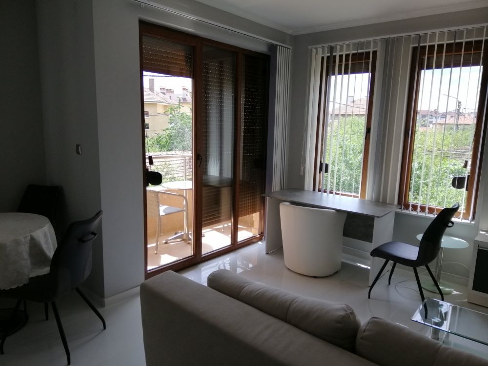Отдава се под наем двустаен апартамент в нова сграда – напълно обзаведен с паркомясто