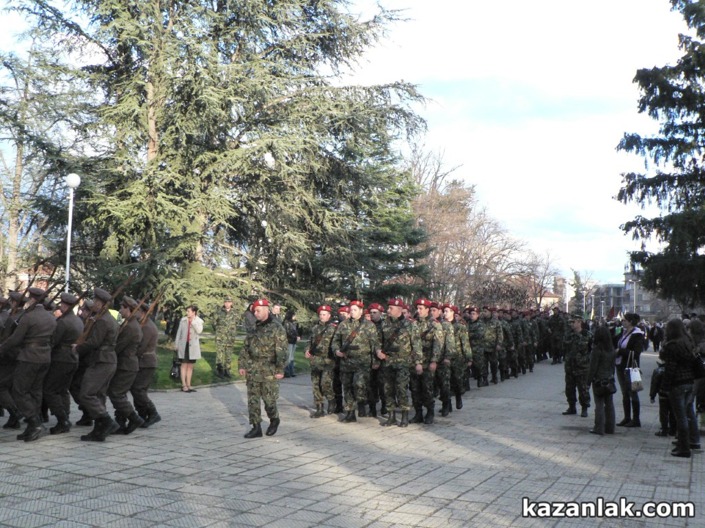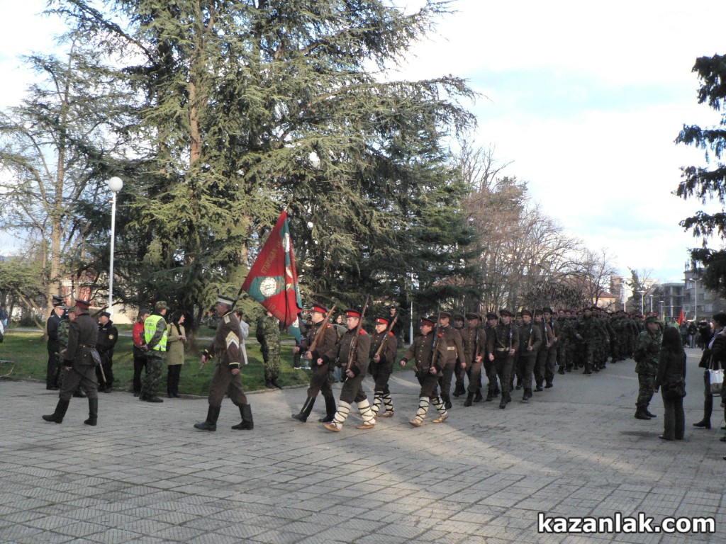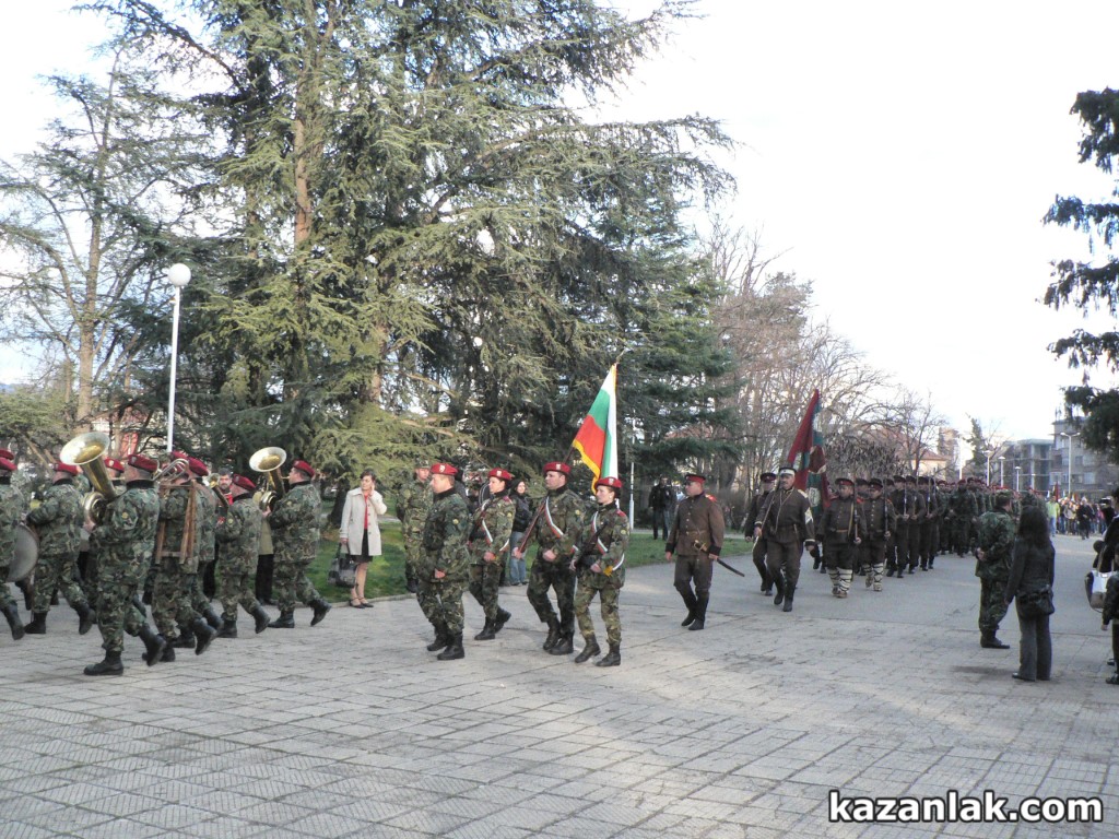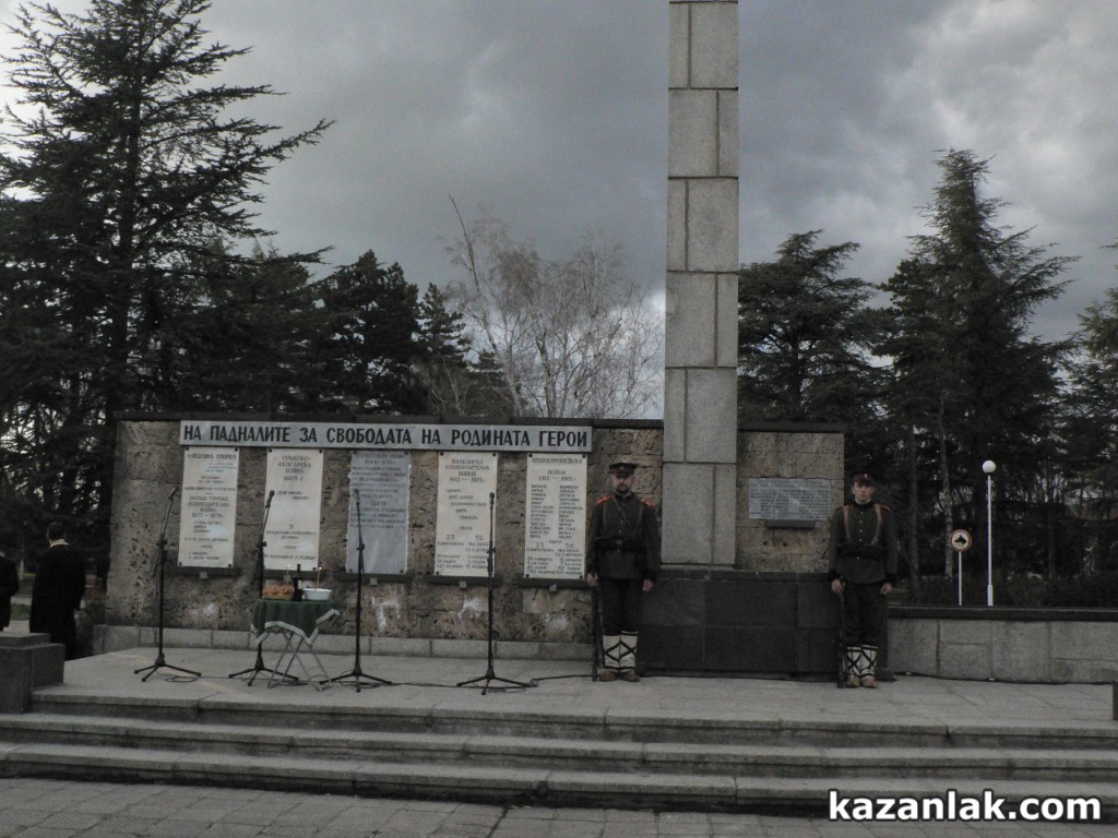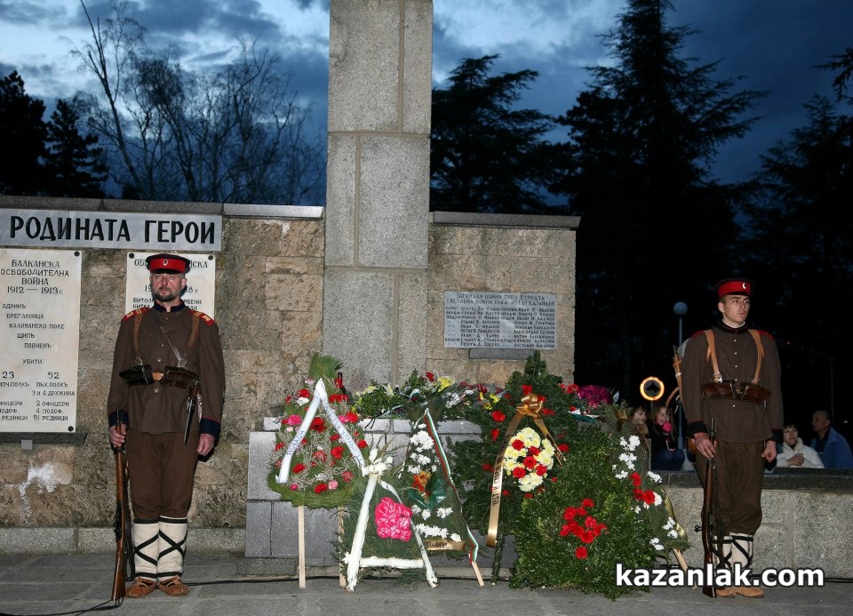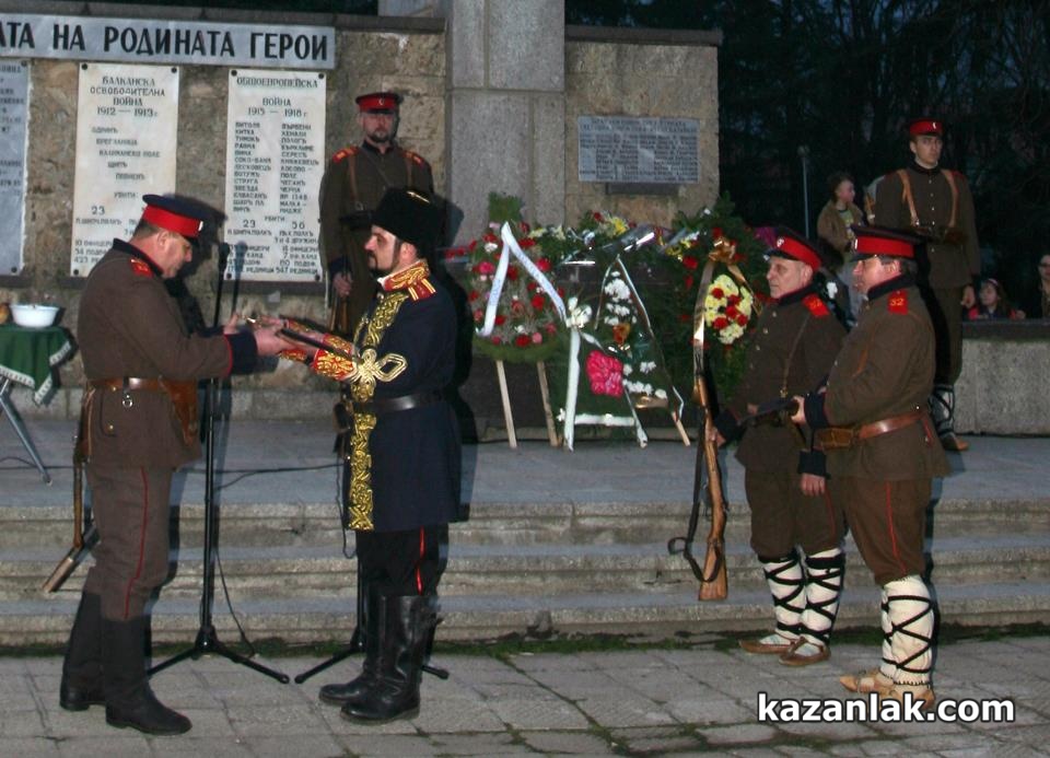 100 годишнината от Балканската война и Одринската епопея отбеляза тържествено тази вечер Казанлък. Шествие, предвождано от военния духов оркестър на Карловската бригада тръгна в 17:00 от площад Севтополис и в 17:30 пристигна пред паметника на загиналите четници, опълченци и български войни във войните за освобождението на България, който се намира в парк Розариум. Почетен караул пред паметника в автентични униформи на Българската армия от Балканската война на доброволците от Национално дружество „Традиция” бе на пост от ранния следобед в Розариума. Панихида за покой на душите на загиналите при Одрин и в хода на Балканската война отслужиха свещеници от Казанлък, заупокойната служба води отец Петко Мотев - архиерейски наместник на казанлъшката епархия. Пред стотиците граждани и официални гости на възпоменанието на юбилейната стотна годишнина от героичната Одринска епопея, бяха припомнени в слово заслугите, саможертвата и историческата значимост на бойните действия, дали обрат и победа на България в Балканската война. Поетична композиция изпълниха учениците Георги Данев от НЧ „Просвета - 1908“ - Овощник, Мариян Мирев и Мария Бонева от НЧ „Братство – 1869“ - Енина. Венци и цветя на признателност поднесоха представители на институциите и гражданите, които присъстваха на честванията. Официален гост на тържествата в Казанлък бе областният Управител на Стара Загора Недялко Недялков. Кметът на Казанлък Галина Стоянова, Председателят на Общинския съвет Николай Златанов, заместникът на областният Управител Петко Карагитлиев, заместник-началникът на щаба на 61 Стрямска Механизирана бригада подп. Стойчо Владев - също бяха сред официалните лица, заедно с още представители на Общината, учители и ученици, военослужещи от 61 Механизирана Стрямска бригада - Карлово, родолюбци от дружествата „Тракия”, „Капитан Петко войвода“ и „Традиция”, деца, младежи, ветерани, офицери от запаса и други патриоти от Казанлък.