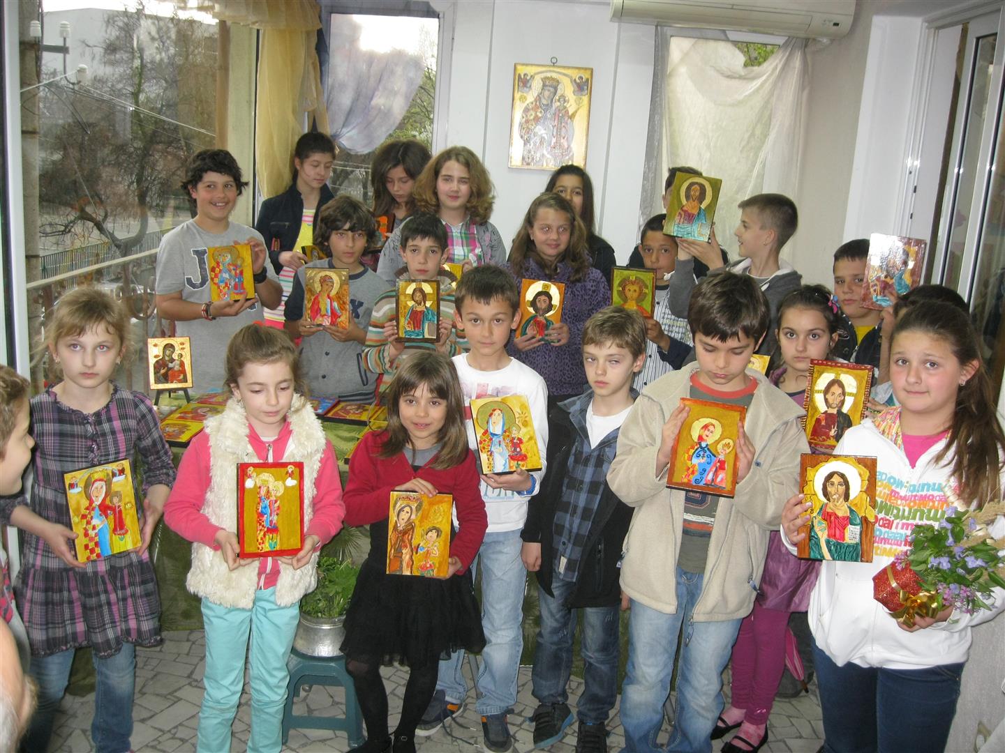 Заедно с иконописеца на АЕК "Етъра" Росен Дончев децата създадоха 35 икони в техника темпера върху дърво. Техни образци: Богородица - разцъфнал цвят, наречена още Богородица Българска, Богородица - умиление, Богородица от Метоха в Пчелино, Христос Пантократор, Христос - Емануил или Христос, като дете и Архангел Михаил - иконописът е на големия художник Андрей Рубльов - единственият художник, канонизиран за светец.