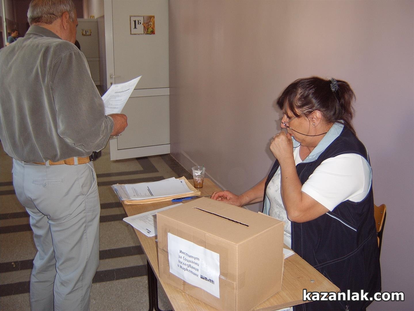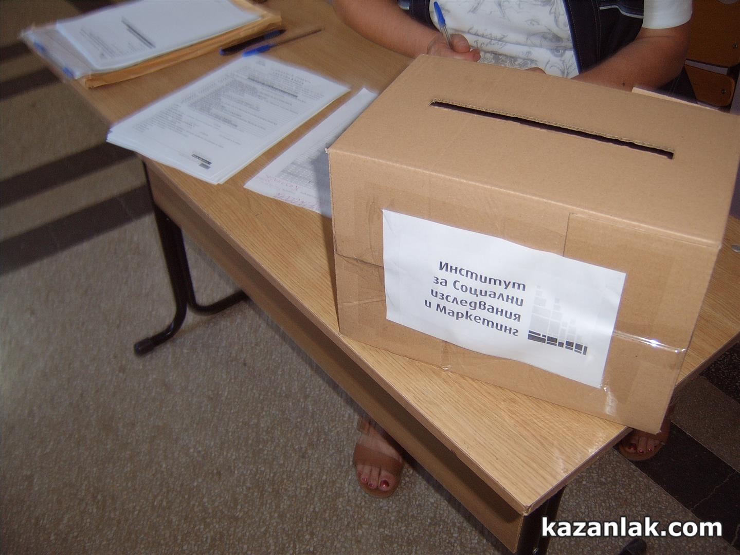 24 % избирателна активност към 12:00 регистрираха от Института за социални изследвания и маркетинг МБМД. И днес в Казанлък социологическата агенция прави паралелно exit poll преброяване на гласовете. В ОУ „Георги Кирков” е разположена „урната” на социолозите, като в нея вота си не повтарят просто желаещите да го направят, както се случваше на предишни избори. Този път социолозите са извадили конкретна секция 012, като молят за повторение на вота всеки 5-ти излизащ от гласуването.