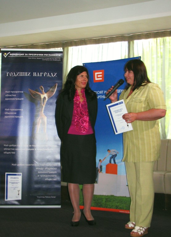 На 16.05.2013 г. на тържествена церемония в „Метрополитън Хотел” – София, за пета поредна година бяха връчени Годишните призове за прозрачност и партньорство в дейността на областните и общинските администрации в България.