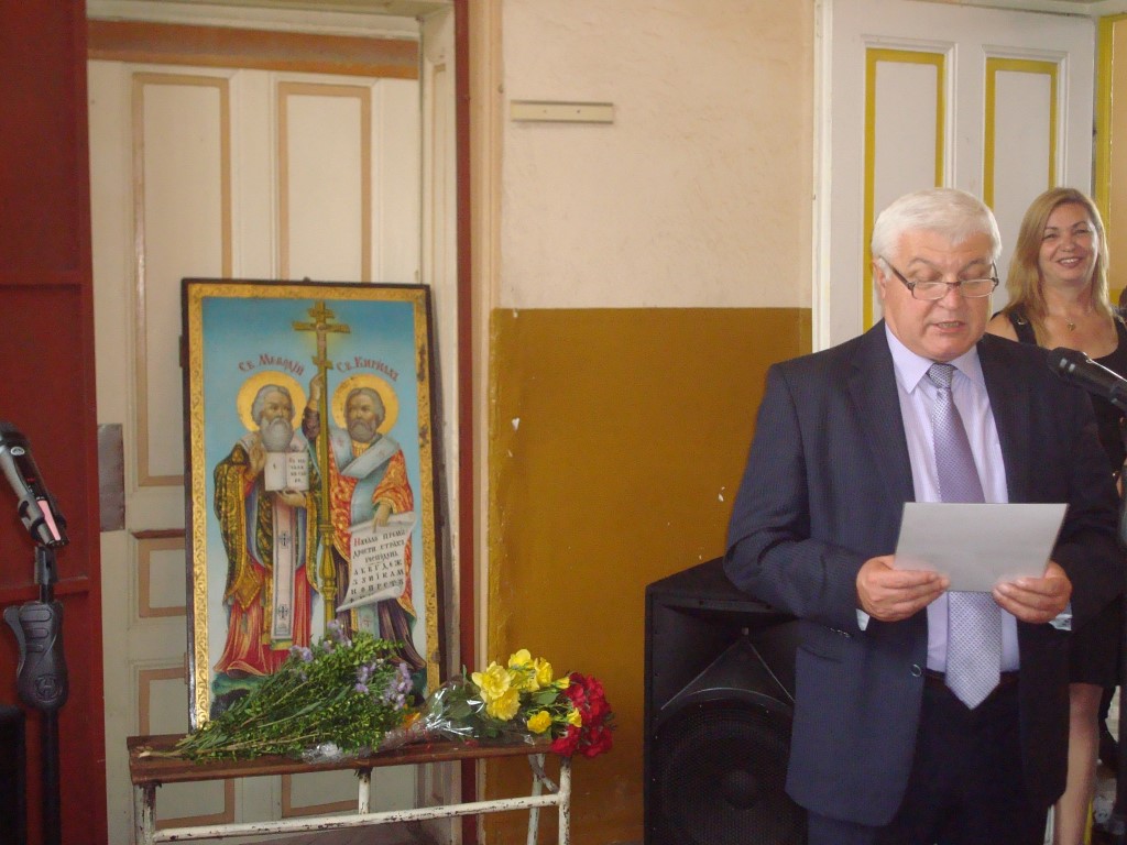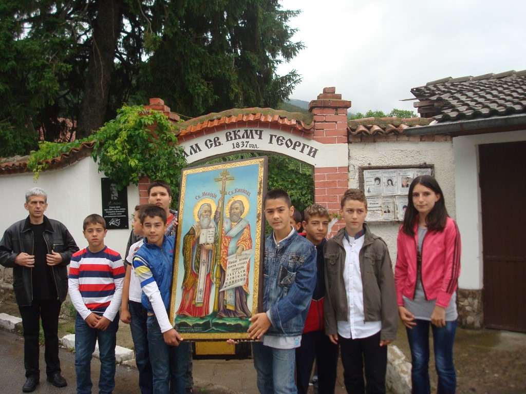 Представителна група донесе иконата на Св.Св.Кирил и Методий от църквата Св. Георги, а свещеник Димитър извърши молебен за здраве и благополучие на всички ученици, учители и всички българи.