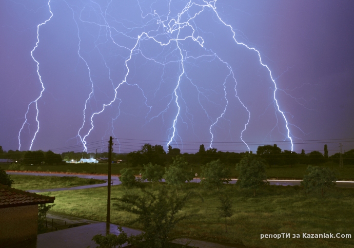 Гръмотевична активност и дъжд, отчетоха в първите часове на 24 май метеоролозите от станцията на НИМХ в град Казанлък. Дъждът в Казанлък е започнал да вали в 1 часа и 20 минути и е продължил до 7 часа и 20 минути, отбелязват метеоролозите. На станцията на НИМХ в града на розите отчетеното количество валеж е от 4,3 литра на квадратен метър.