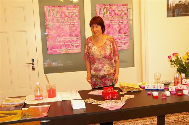 В навечерието на 110-ата годишнина на Празника на розата в Казанлък, чиято кулминация е на 31 май, 1 и 2 юни, в Посолството на България в Берн посланик Меглена Плугчиева организира със съдействието на Община Казанлък невероятна вечер на България в столицата на Швейцария. Представители на дипломатическите мисии в Берн, кметът на града Александър Чепет, началникът на администрацията на Берн, българи, живеещи в Швейцария, бяха част от вечерта, посветена на българската роза и на Казанлък.
