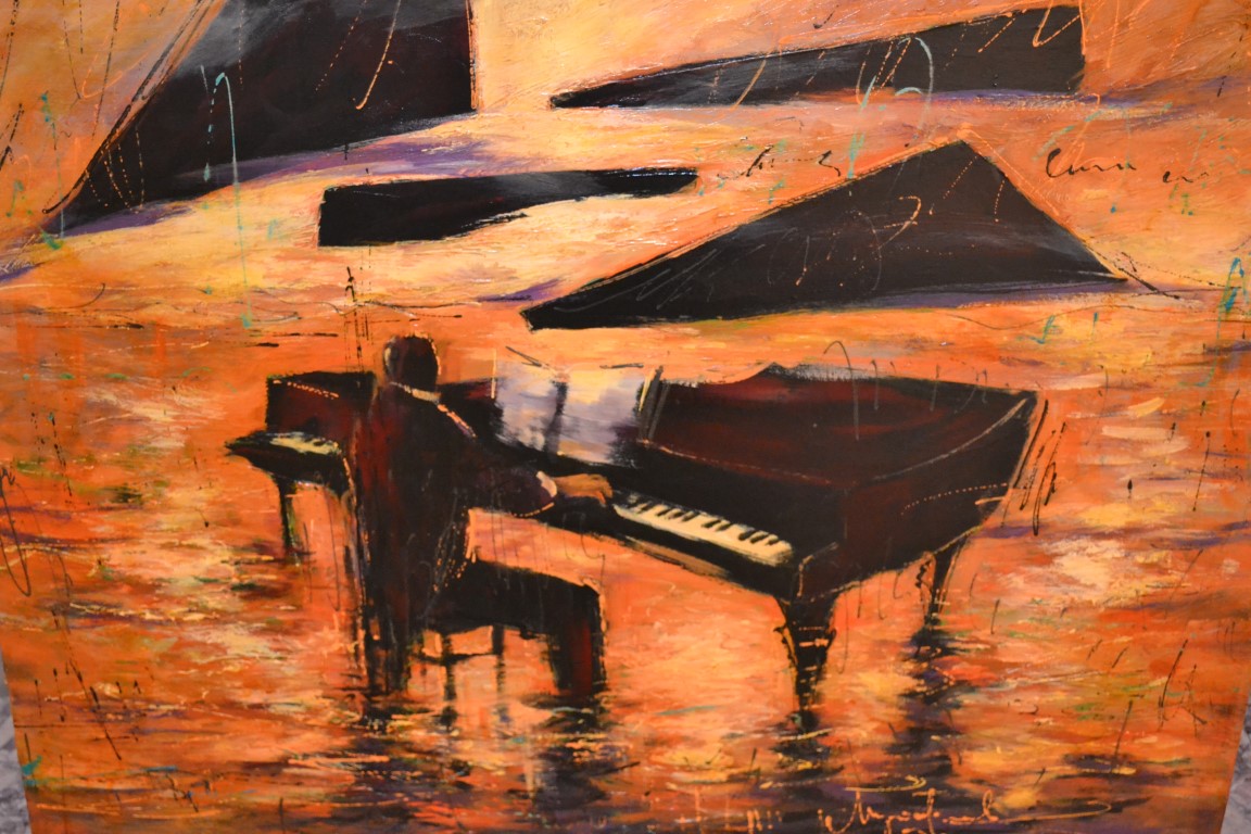 В картините личи стремеж към излизане от затвореното пространство на рамката, изплъзването/изтичането на цветовете, пускането им на воля - стихийно и свободно и превъщането им в звуци, които, изтанцували лудия си танц, се прибират отново в гърлото на вулкана. Онази синестезийност - способността да виждаш цветовете в музика, да усетиш енергията на думите в цвят, и звуците в техния съответстващ колорит, е онова, на което разчита изложбата за пълното й изживяване. Както и на музикантите от джаз-формацията "Зона Ц": Васил Пармаков - пиано, Веселин Веселинов-Еко - бас и Стоян Янкулов-Стунджи - барабани , които ще свирят вечерта на откриването.