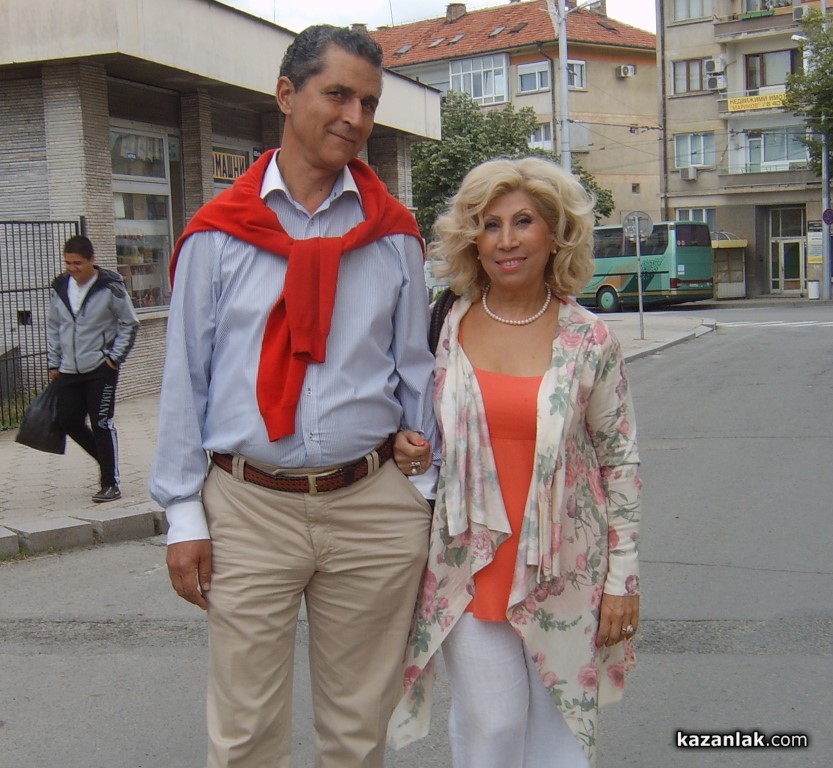 Голямата българска певица Силвия Кацарова заедно със съпруга си Любомир Димитров също бяха в Казанлък за Празника на Розата. Kazanlak.Com случайно ги улови в бърза крачка към Карнавалното шествие днес по обед.