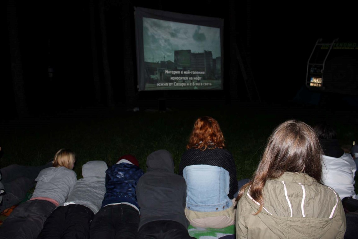 Участниците направиха лятно кино, което бе изработено от материали за рециклиране. Именно на това кино, еколюбителите наблюдаваха филма на Генади Кондарев „Нигерия кърви.