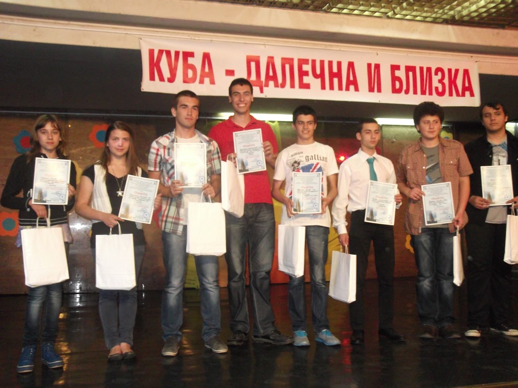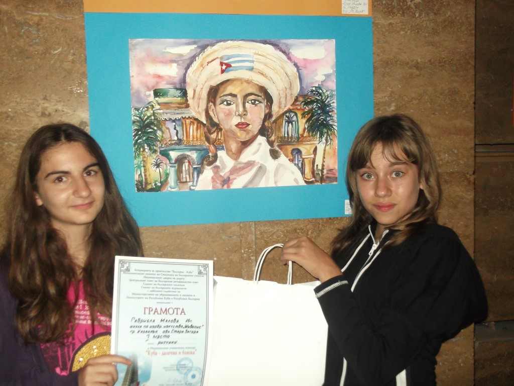 От Националния конкурс „Куба – далечна и близка”, отличията за школата също са четири: Първо място за Габриела Малова – 16г., чиято награда е едноседмична почивка на море в СОК „Камчия”, заедно с деца от Русия. Останалите отличия са: Трето място за Никола Вълчев – 18г. и за Галина Маринова – 16г., а Тенчо Бортоласов – 13г. спечели поощрителна награда.