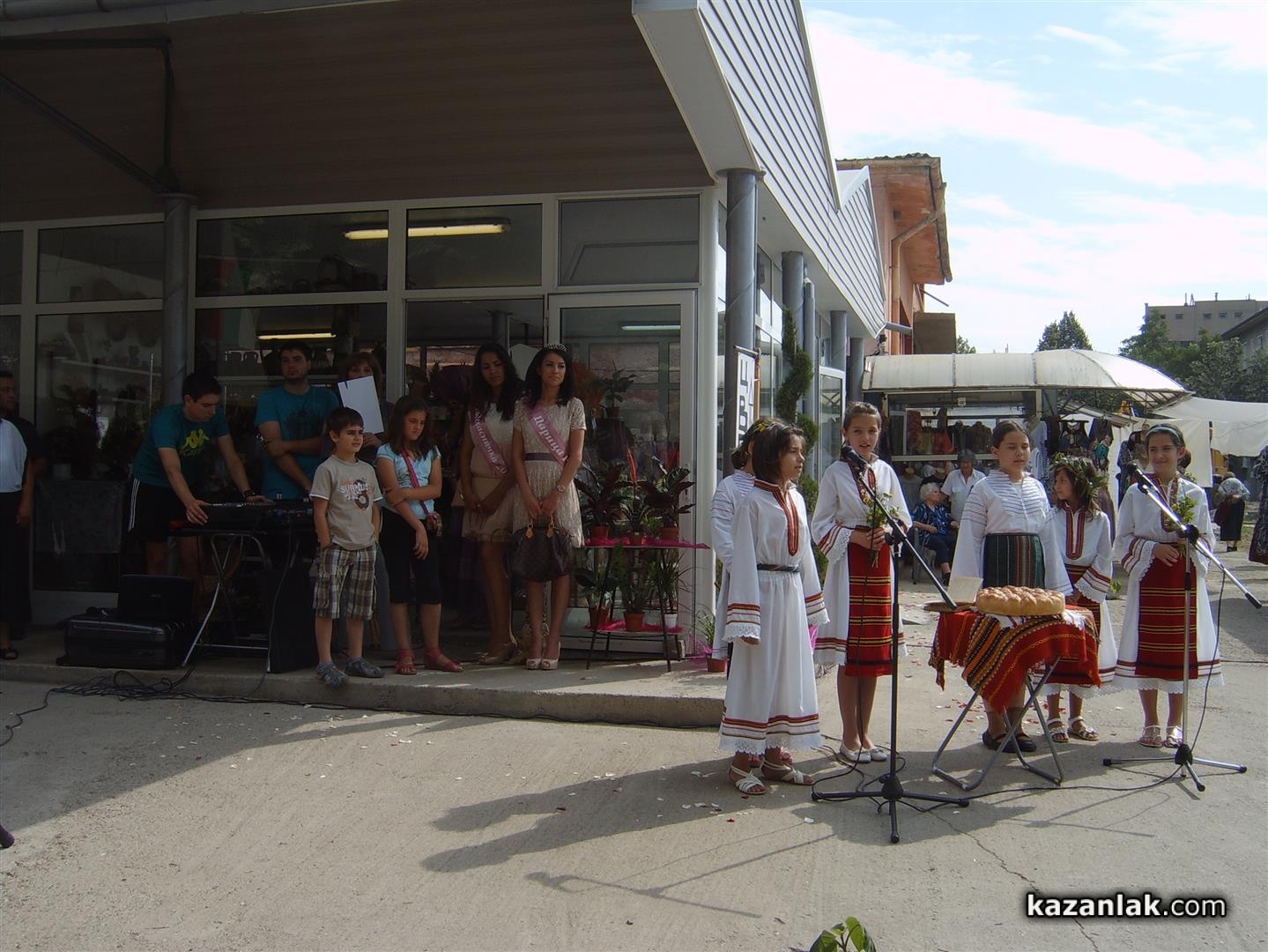 Павилионът бе осветен, а Царица Роза 2013 Юлия Попова откри цветния пазар с традиционния ритуал - да върви по вода.