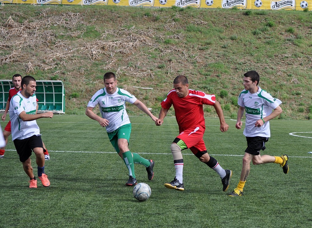 Казанлъшките полицаи играха в традиционните за града ни червени екипи, а общинарите от Стара Загора със зелено-бели екипи, каквито са и цветовете на Берое.