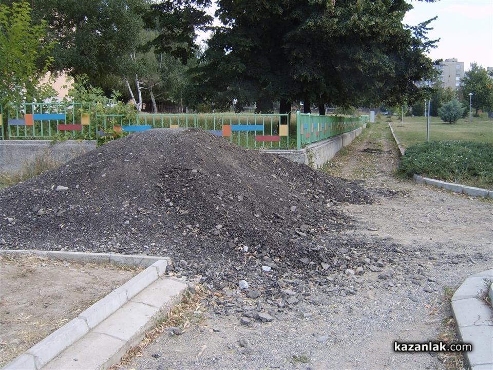 От Общината веднага насипаха опасната алея, по която се виждаха кабели, а от днес започнаха разстилането на натрошения асфалт, докаран от Съединение. Новата настилка ще бъде посипана по нея и по алеята покрай оградата на училището. След като се разстели, асфалтът ще се валира. Цялата работа трябва да приключи до края на седмицата, обясниха за Kazanlak.Com от Община Казанлък.