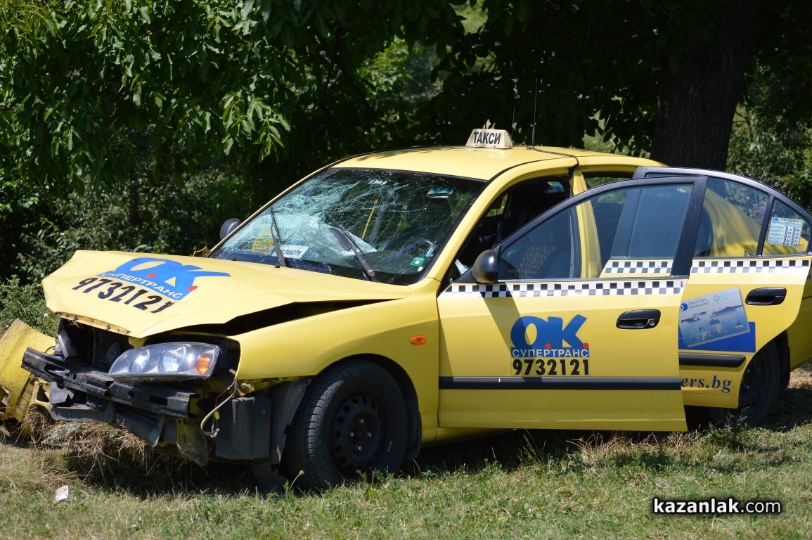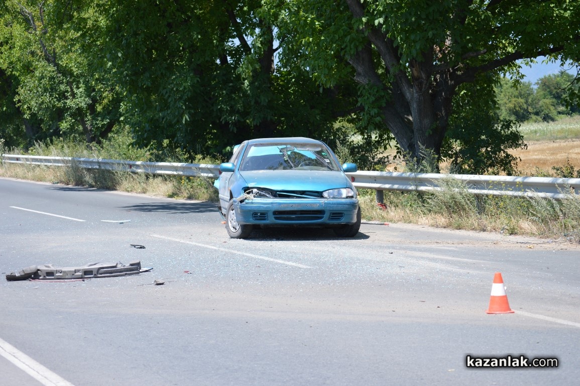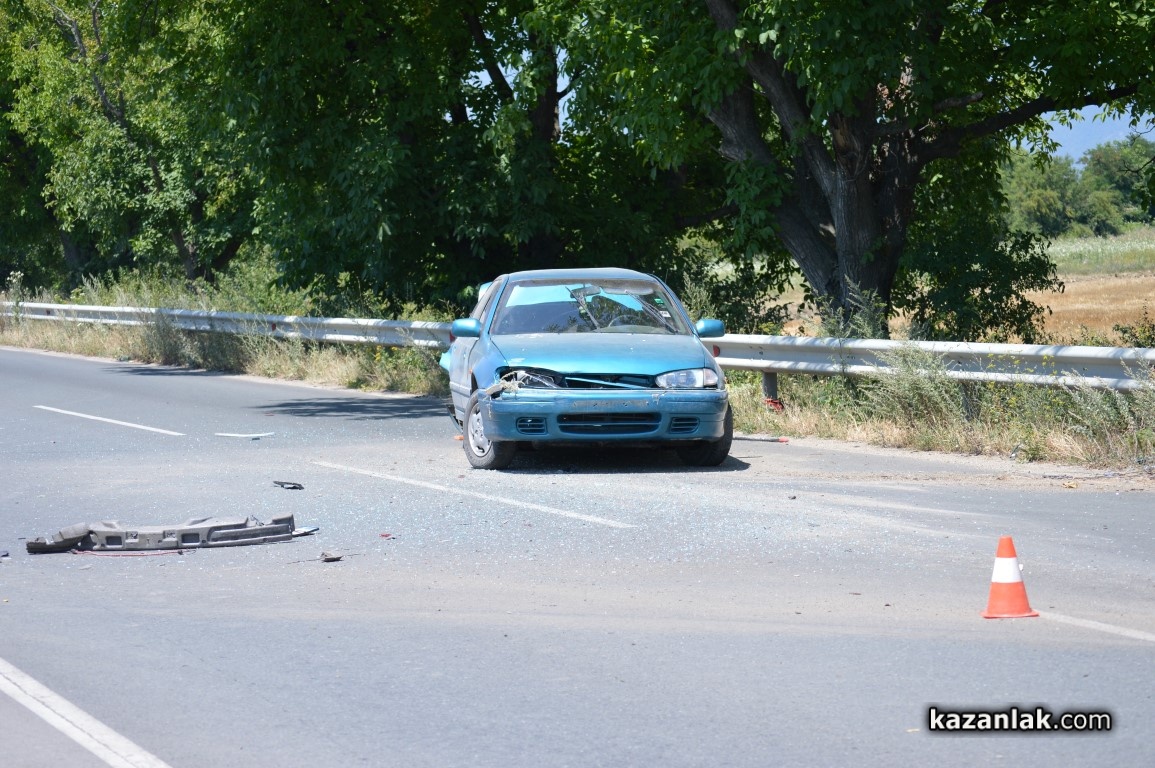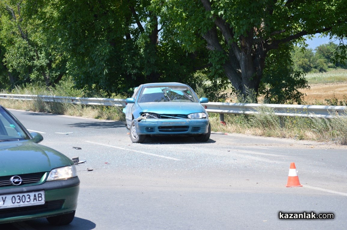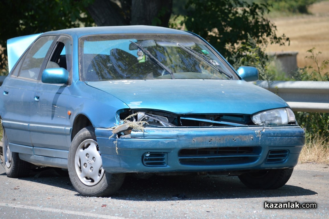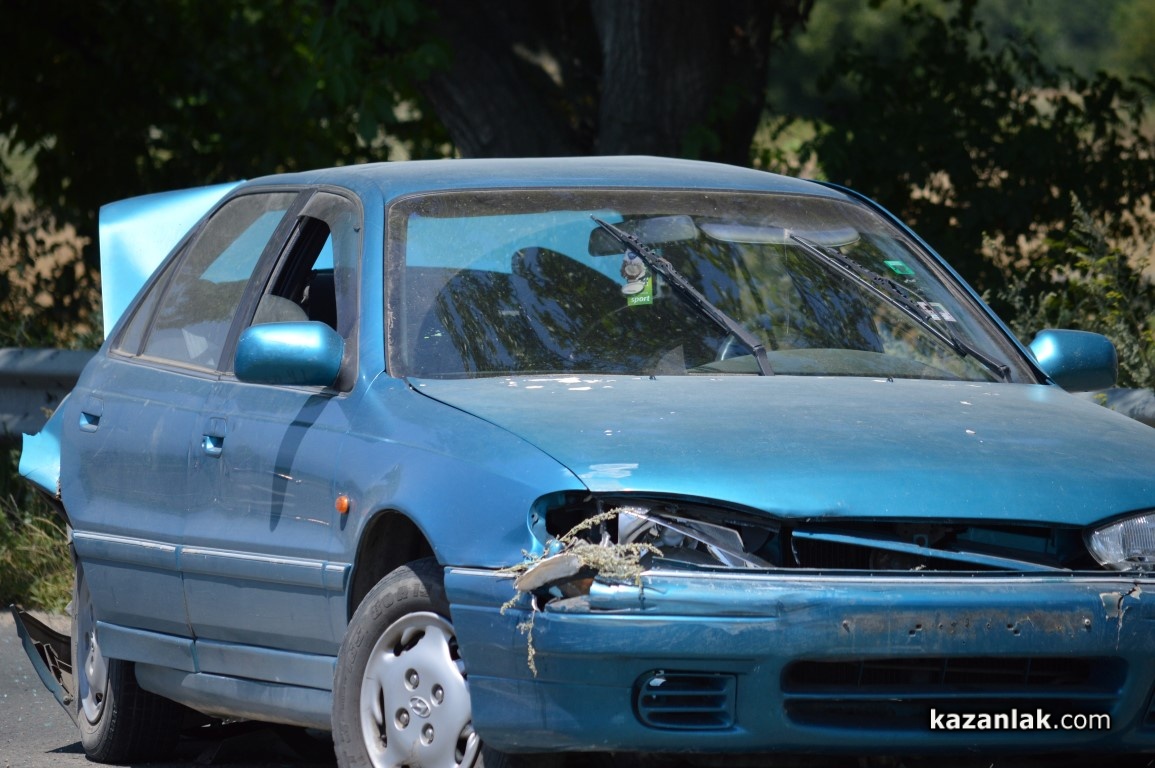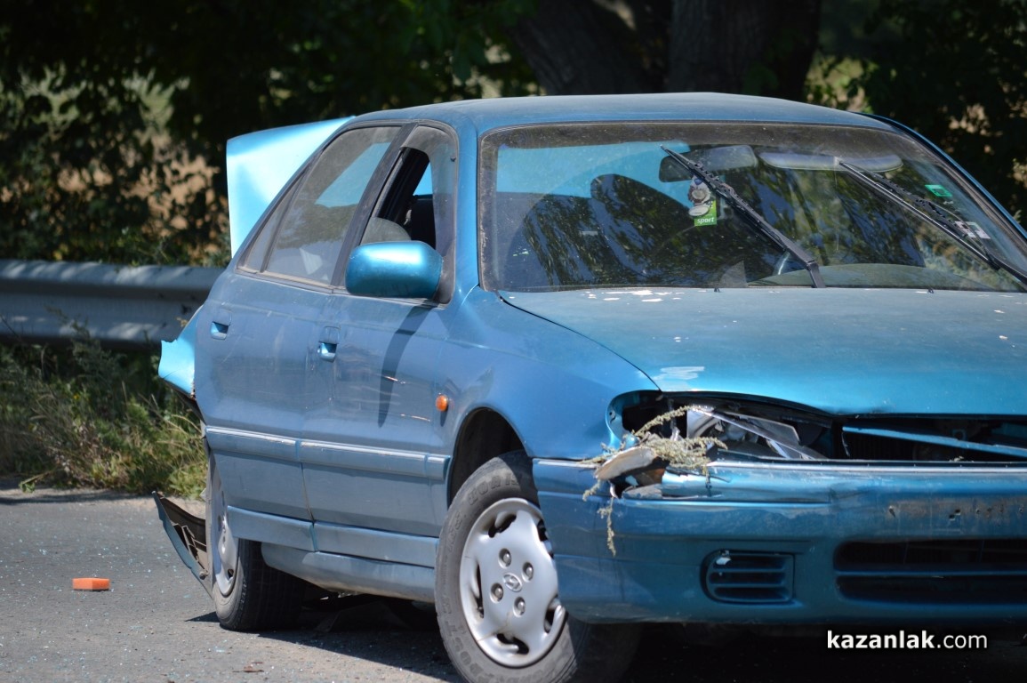 Хюндай Лантра управляван от 40-годишен казанлъчанин е подал ляв мигач и е изчаквал да завие към чешмата, но е блъснат отзад от таксиметров Хюндай Елантра, управляван от 79-годишен софиянец. При удара Лантрата с 40 годишния казанлъчанин се завърта няколко пъти на пътното платно и остава на него, а таксиметровия автомобил прелита около 40 метра и спира в нива край пътя.