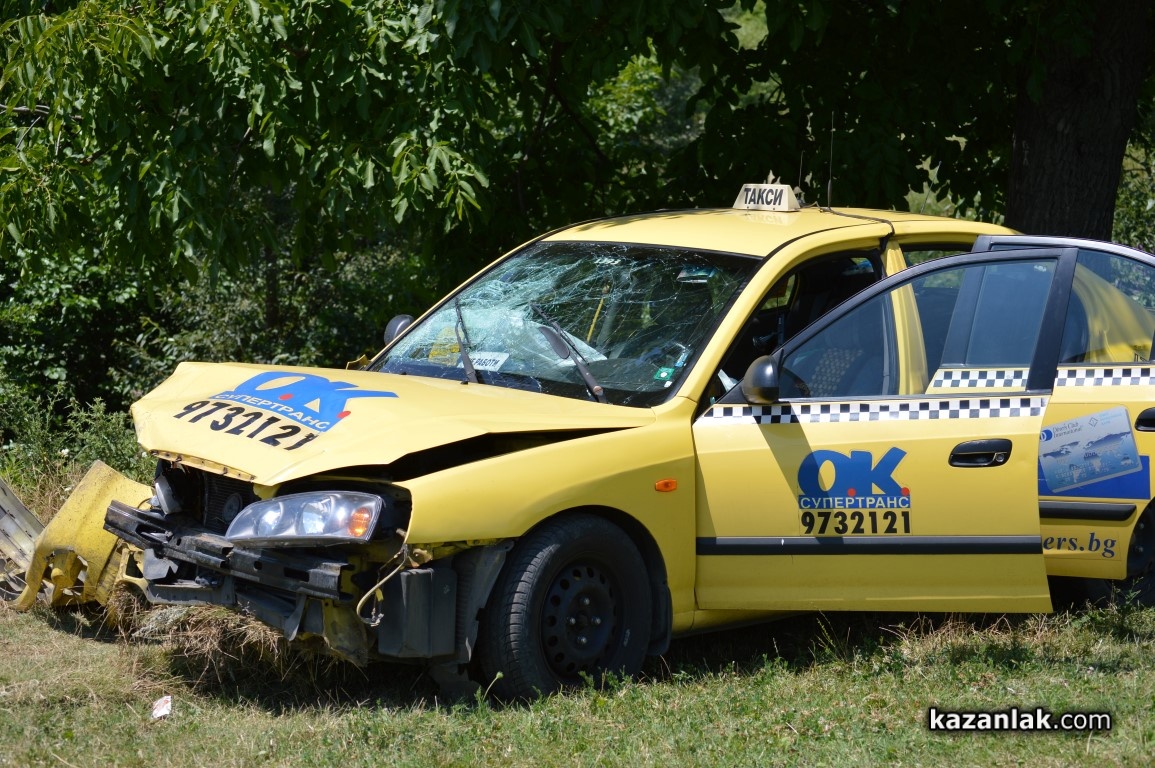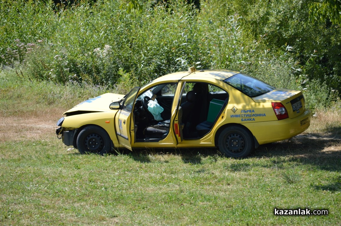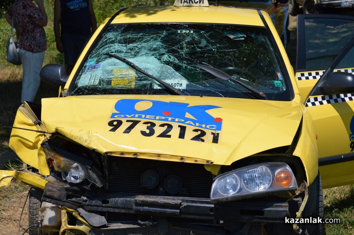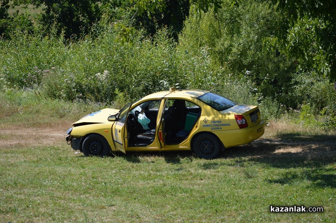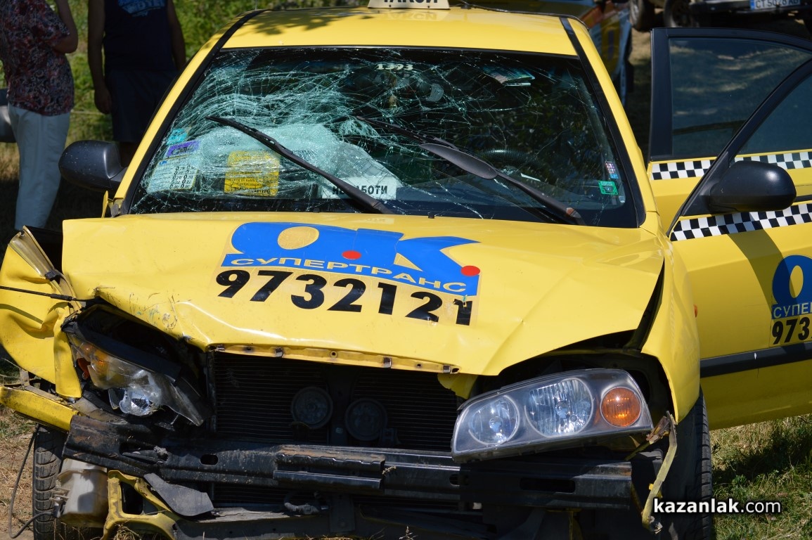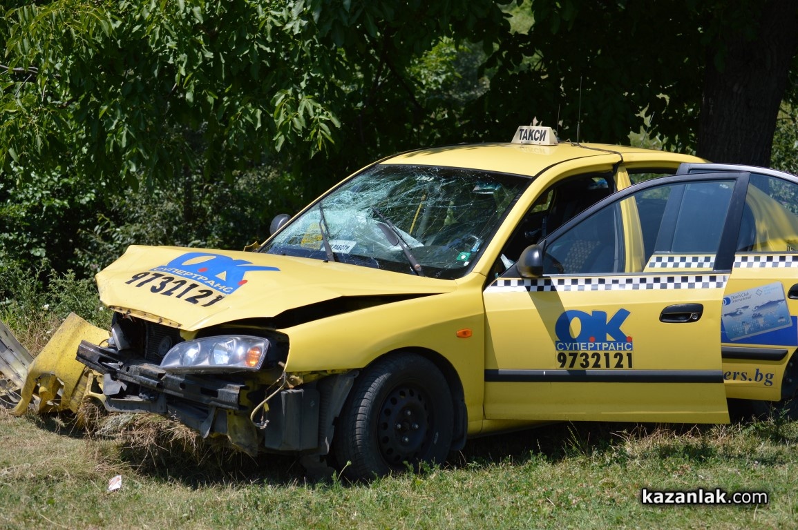 Хюндай Лантра управляван от 40-годишен казанлъчанин е подал ляв мигач и е изчаквал да завие към чешмата, но е блъснат отзад от таксиметров Хюндай Елантра, управляван от 79-годишен софиянец. При удара Лантрата с 40 годишния казанлъчанин се завърта няколко пъти на пътното платно и остава на него, а таксиметровия автомобил прелита около 40 метра и спира в нива край пътя.