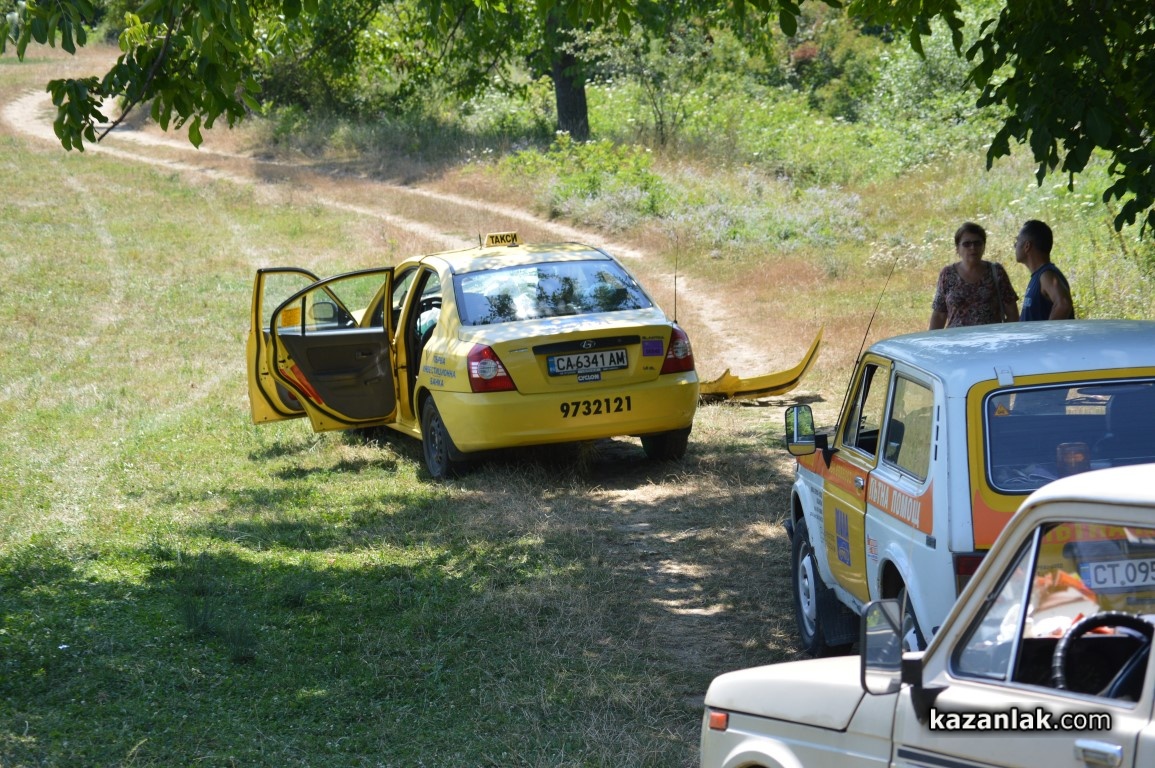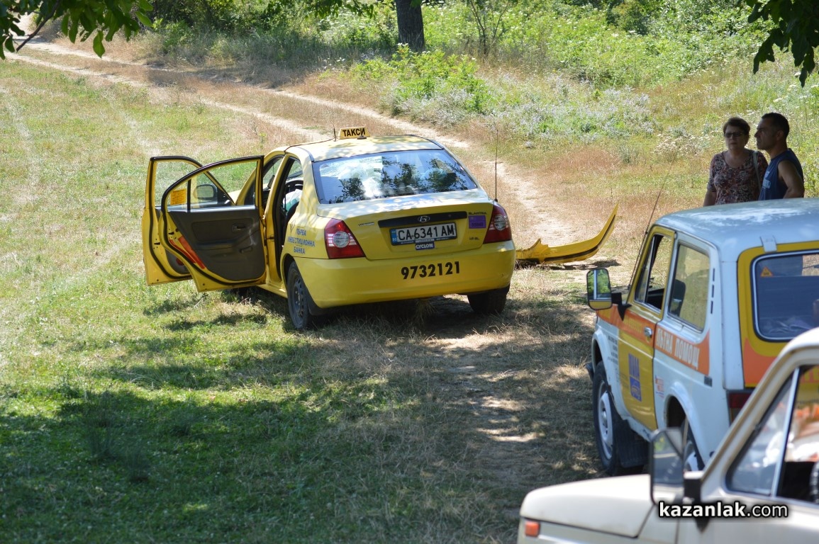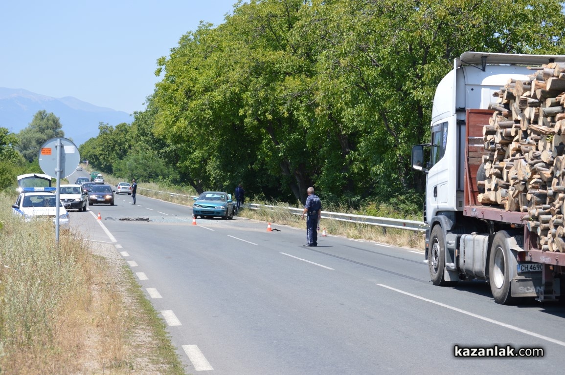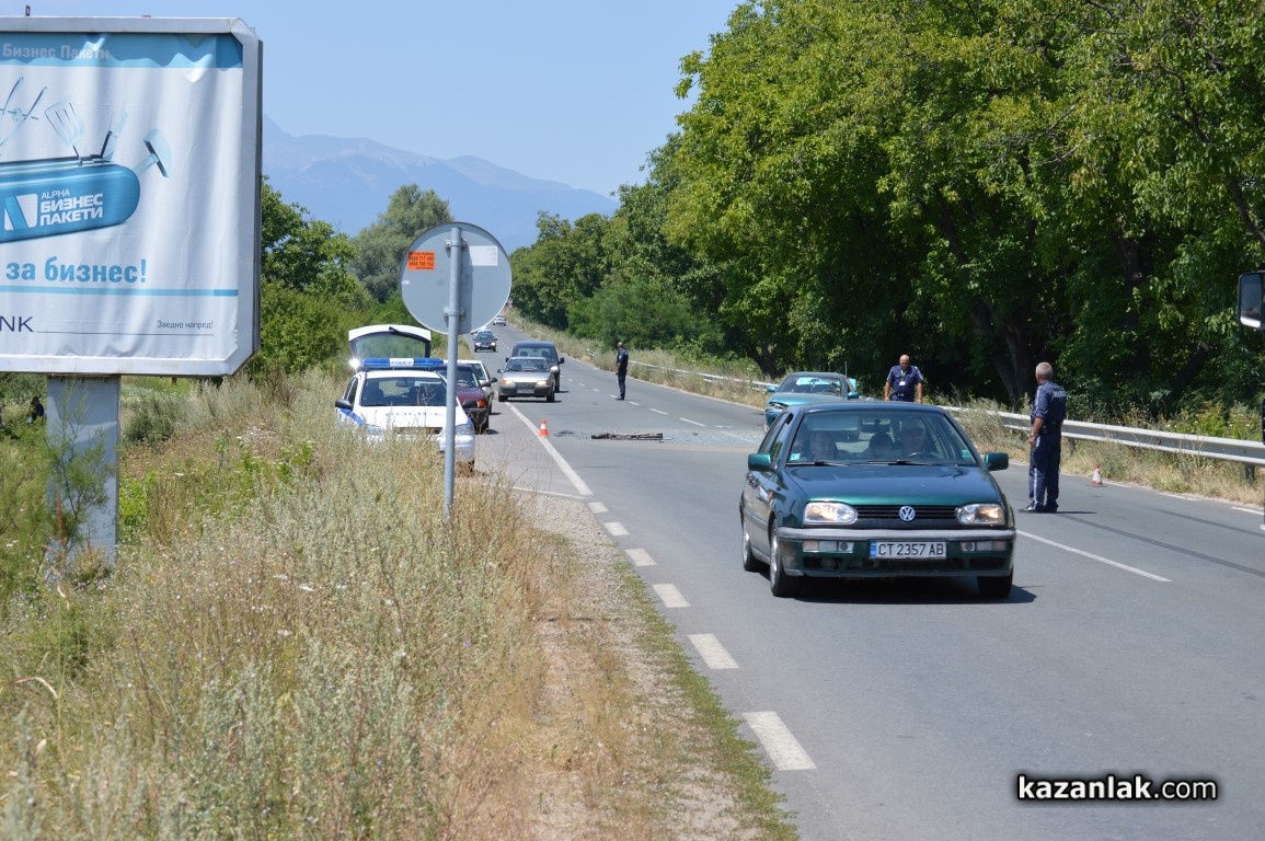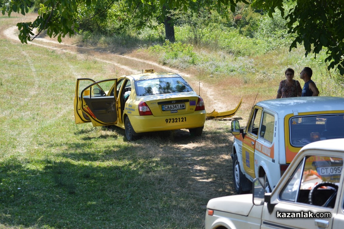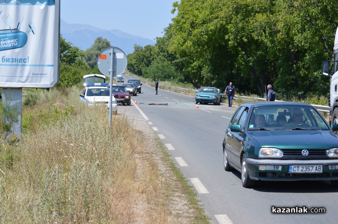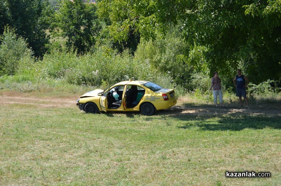 Хюндай Лантра управляван от 40-годишен казанлъчанин е подал ляв мигач и е изчаквал да завие към чешмата, но е блъснат отзад от таксиметров Хюндай Елантра, управляван от 79-годишен софиянец. При удара Лантрата с 40 годишния казанлъчанин се завърта няколко пъти на пътното платно и остава на него, а таксиметровия автомобил прелита около 40 метра и спира в нива край пътя.