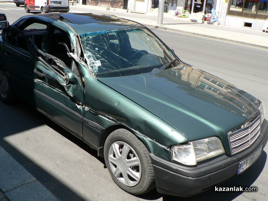 Младеж на 22-години катастрофира днес със закупения от него преди дни Мерцедес C 220 i. Катастрофата става по пътя Казанлък-Стара Загора, на около 500 метра от разклона за Мъглиж. 22-годишният казанлъчанин тръгнал да взима жена си и родилото му се наскоро дете от болницата в Стара Загора, разказа пострадалият пред Kazanlak.Com