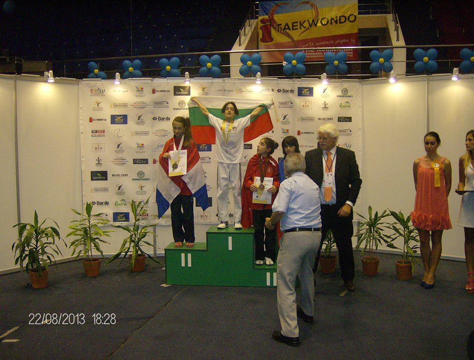 Цветелина постигна един голям успех за страната ни още в първия ден на надпреварата, която се провежда в Румъния. В шампионата в Букурещ участват общо 390 състезатели от 41 държави. През лятото Цвети се подготвяше целенасочено за шампионата, като освен в Казанлък тренира и заедно с националите на лагер в Белмекен. Така младата казанлъчанка се превръща и една бъдеща олимпийска надежда в таекуондото версия WTF.