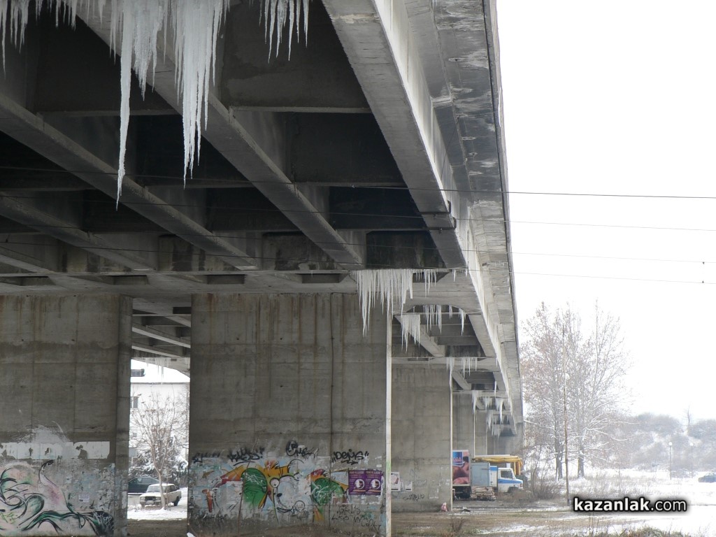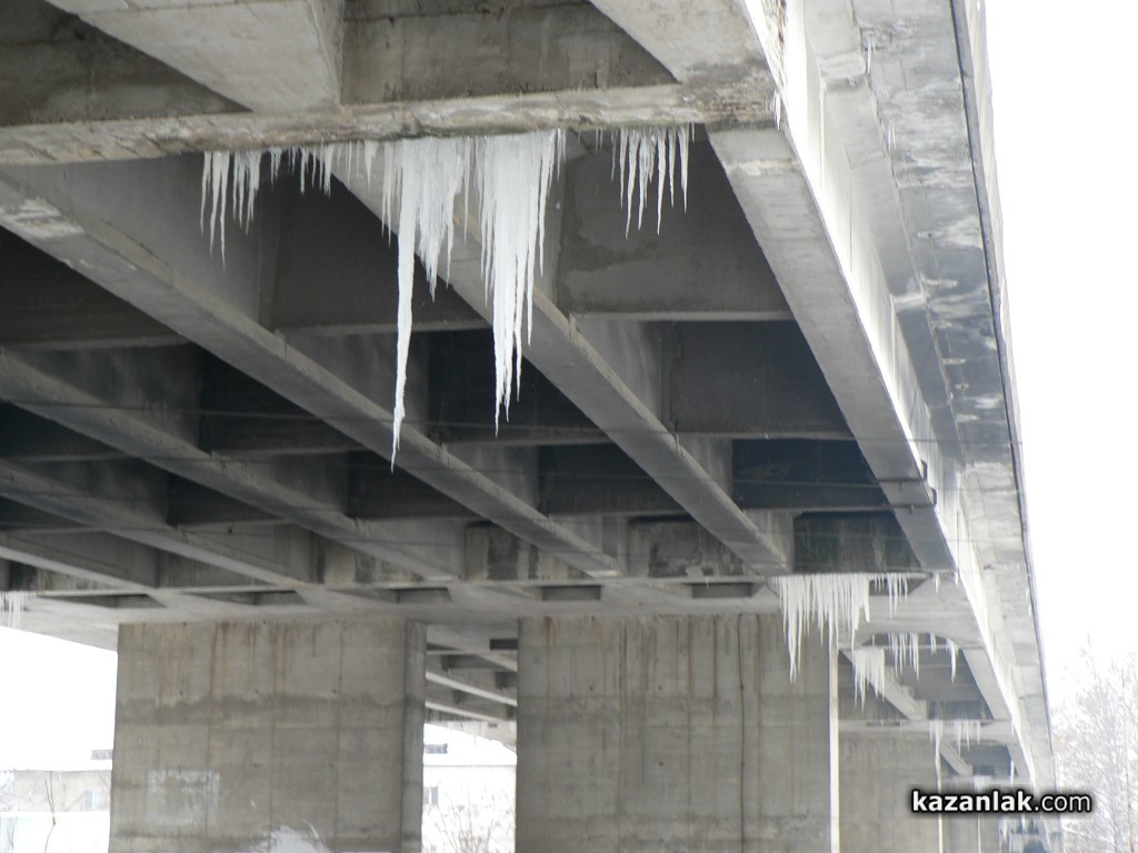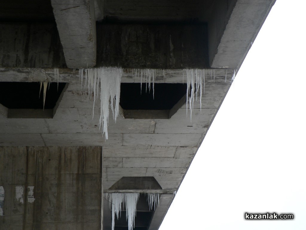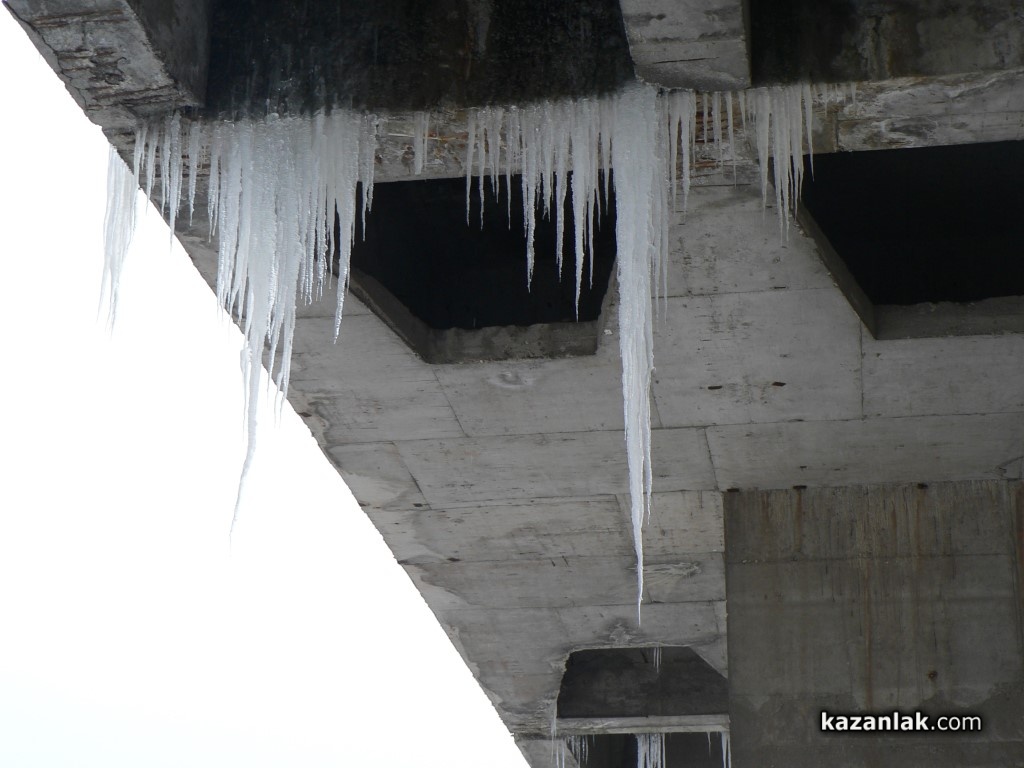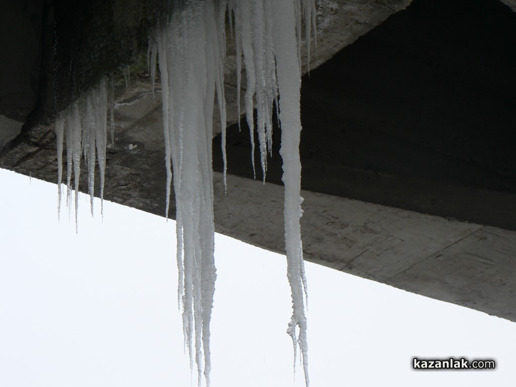 Тази сутрин под надлеза за Арсенал можеха да се забележат стотици ледени висулки. Под надлеза има десетки автомобили, които са паркирани и прекарват голяма част от денонощието там. Също така, хиляди казанлъчани, работещи в Арсенал, Катекс и много други фирми в района, минават от там пеш. Трафикът на автомобили също е голям, заради Индустриалната зона. Вече са предприети действия за отстраняването на красивите, но опасни природни творения.