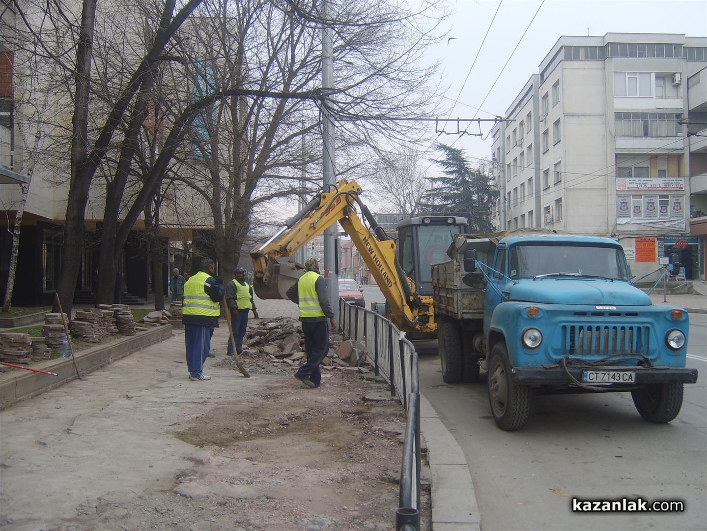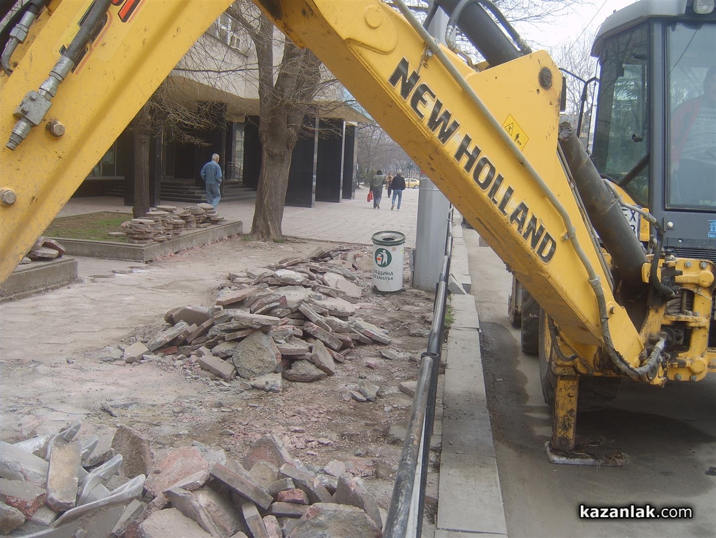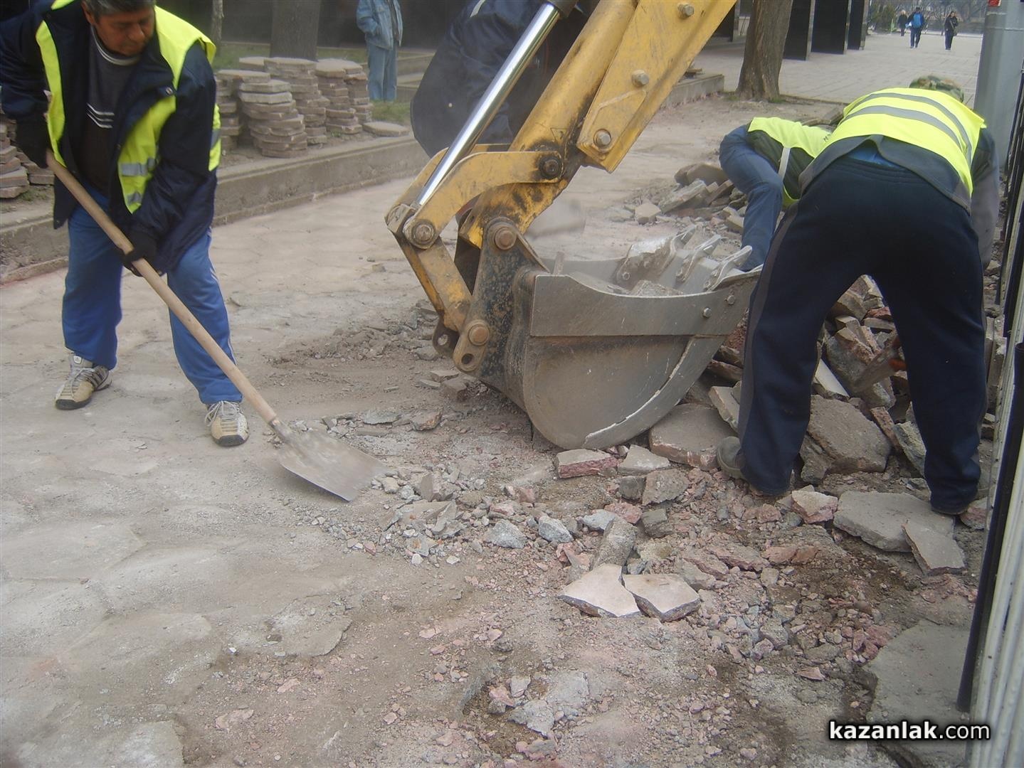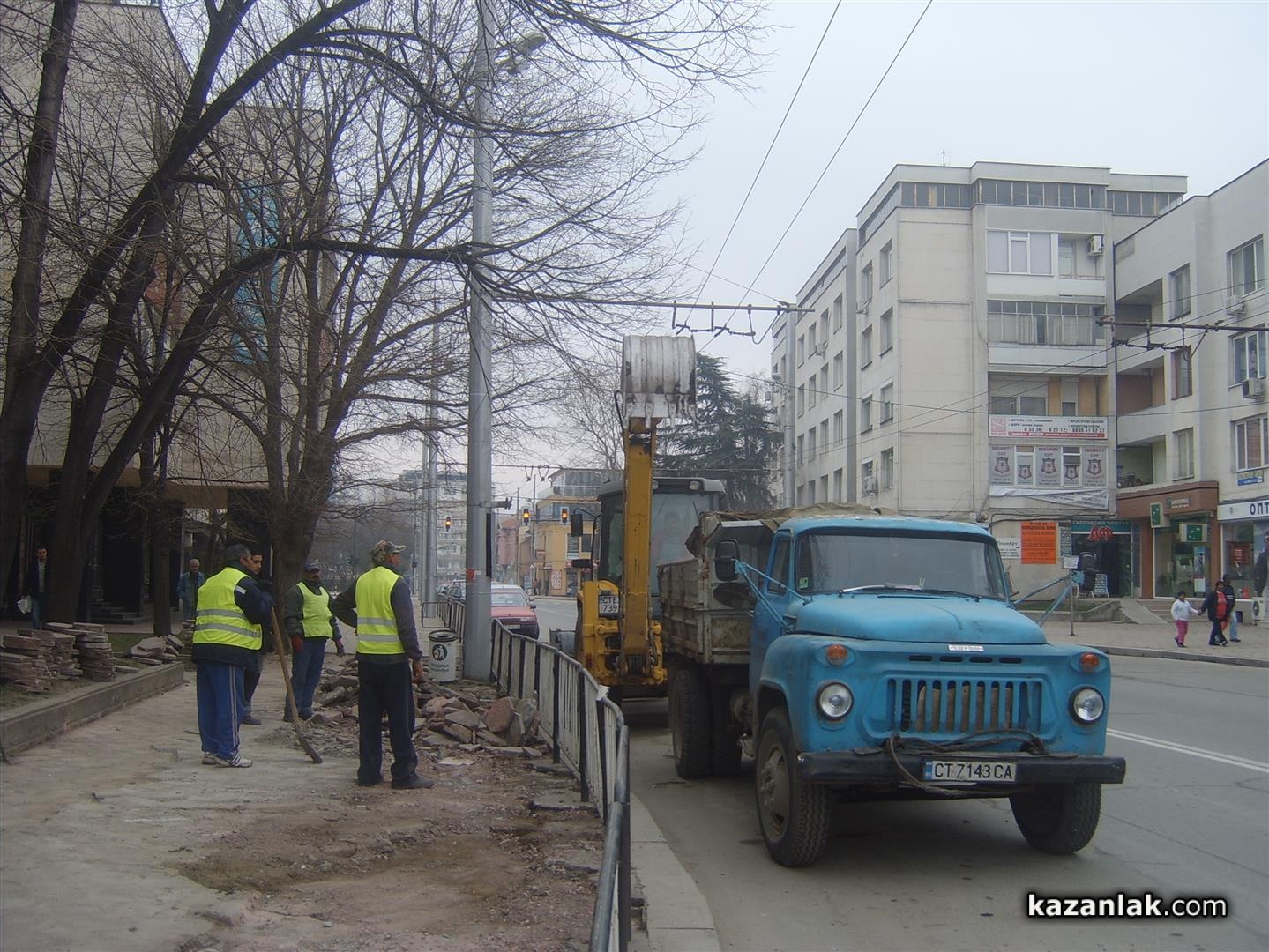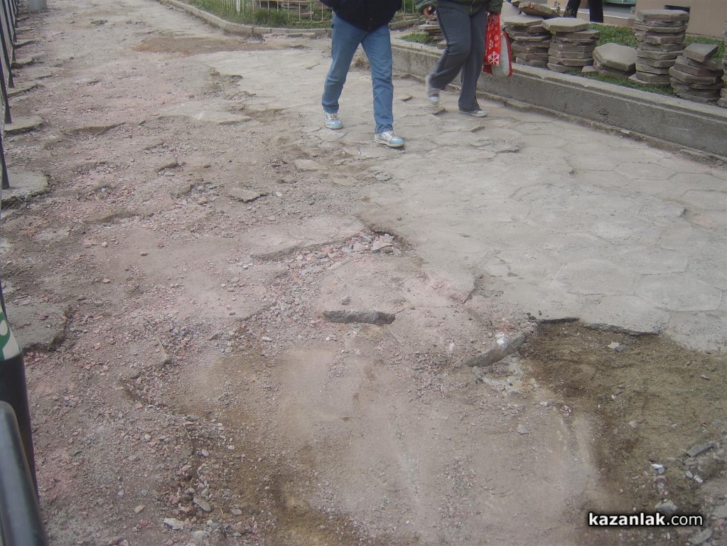 Днес строителите на общинското предприятие по благоустрояване изкъртиха старите плочки по северния тротоар между хотел Казанлък и ДСК. Предстои тротаоарът да бъде подновен с нова настилка. Преди Празника на Розата миналата година, общината успя да подмени тротоара пред хотел Казанлък и Десперадо.
