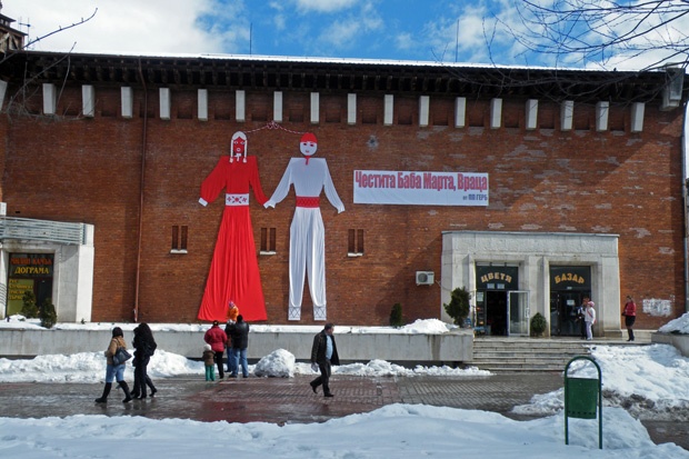 На снимката една от най-големите мартеници в страната, която е висока 10 метра и широка 6 метра. Мартеницата бе поставена във Враца през 2009-та година.