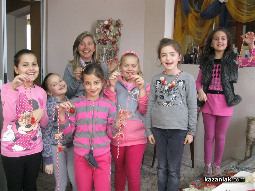 На 22 и23 февруари в Галерия Ателието се проведе ателие за изработване на мартеници. Галерията продължава традицията на мартениците и провежда това ателие за трета поредна година. Освен традиционните мартеници, децата от школа "Арт линия" вложиха въображение и авторство в изработването на мартеници, които ще подарят на 1-ви март. Тази година школата участва и в работилницата за мартеници организирана от Общинска библиотека" Искра''.