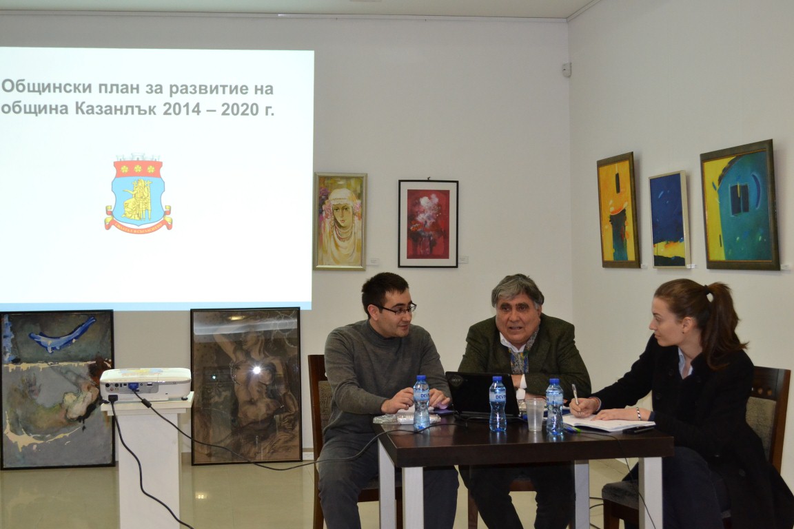 На 17 март в залата на Културно-информационен център на ул. „Искра 4“ в Казанлък се проведе обществено обсъждане на Проект Общински план за развитие (ОПР) на община Казанлък 2014-2020 г. В обсъждането се включиха заинтересовани страни – граждани и институции. Начало на общественото обсъждане постави зам.-кметът Лилия Цонкова. Представянето на Проекта на ОПР и дискусията се ръководи от експерти на Национален център за териториално развитие - София, работещи в областта на регионалното развитие. Визията за развитие, която е заложена в ОПР за следващия програмен период, е Община Казанлък да се развива като утвърден промишлен център от национално значение, център на Долината на розите и тракийските царе, с реализиран потенциал за интелигентен растеж, с подобрен жизнен стандарт, привлекателно място за живот, бизнес, инвестиции и туризъм, съхранена природна среда, традиции и култура. Главна стратегическа цел е постигането на устойчиво развитие чрез стабилни темпове на икономически растеж и подобряване качеството на жизнената среда на основата на разполагаеми ресурси и потенциали на територията.