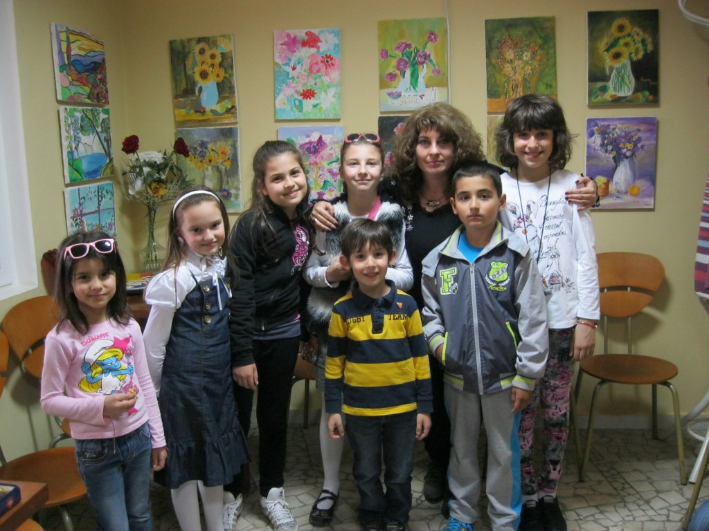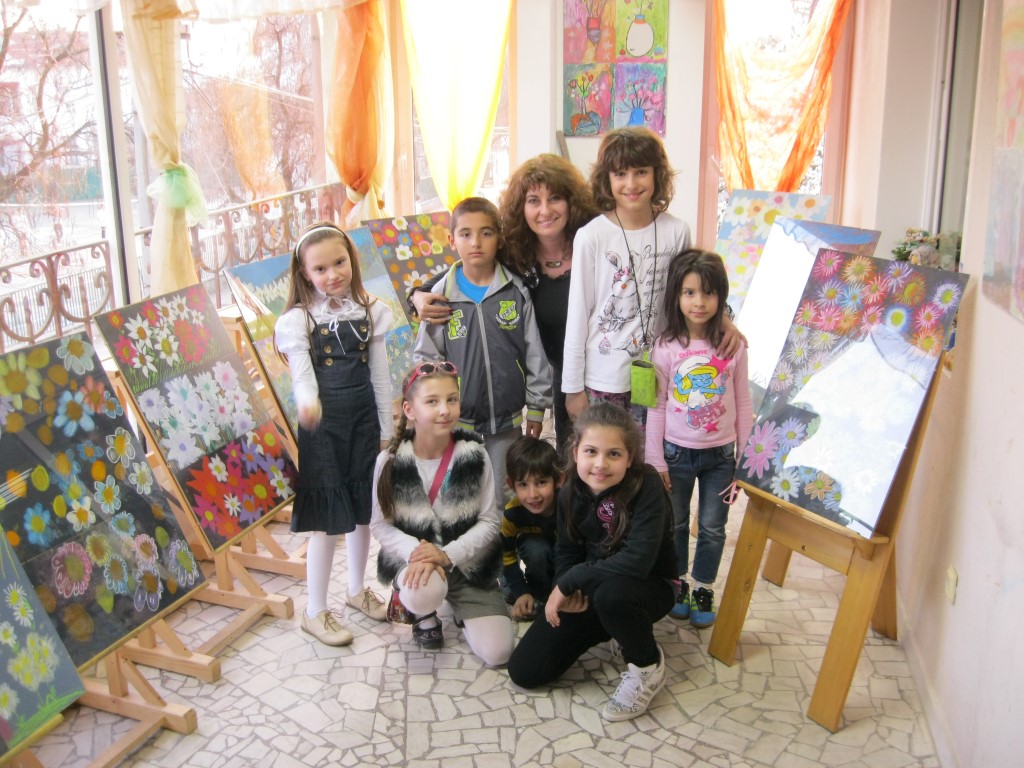 Малките автори от школа Арт линия представиха композиции с цветя(сух пастел) и натюрморти за първи път в техника (акрил върху платно).