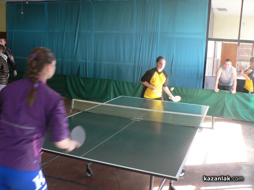 Вчера и днес в залата на клуб по тенис на маса Розова долина се проведе Общинското ученическо първенство по този спорт. Вчера се проведоха надпреварите при децата 5-7 клас. При момичетата първи е отбора на ОУ „Никола Вапцаров“, който ще представя община Казанлък на Областното първенство. При момчетата първи е съставът на ХГ „Св.св. Кирил и Методий“, който победи на финала отбора на ПМГ „Никола Обрешков“. Трети в първенството е съставът на ОУ „Никола Вапцаров“, който във финала победи представителите на ОУ „Христо Ботев“-село Енина. Индивидуално победител при момчетата е Иван Иванов от ХГ „Св.св. Кирил и Методий“, а при момичетата Кристина Георгиева от ОУ „Никола Вапцаров“.