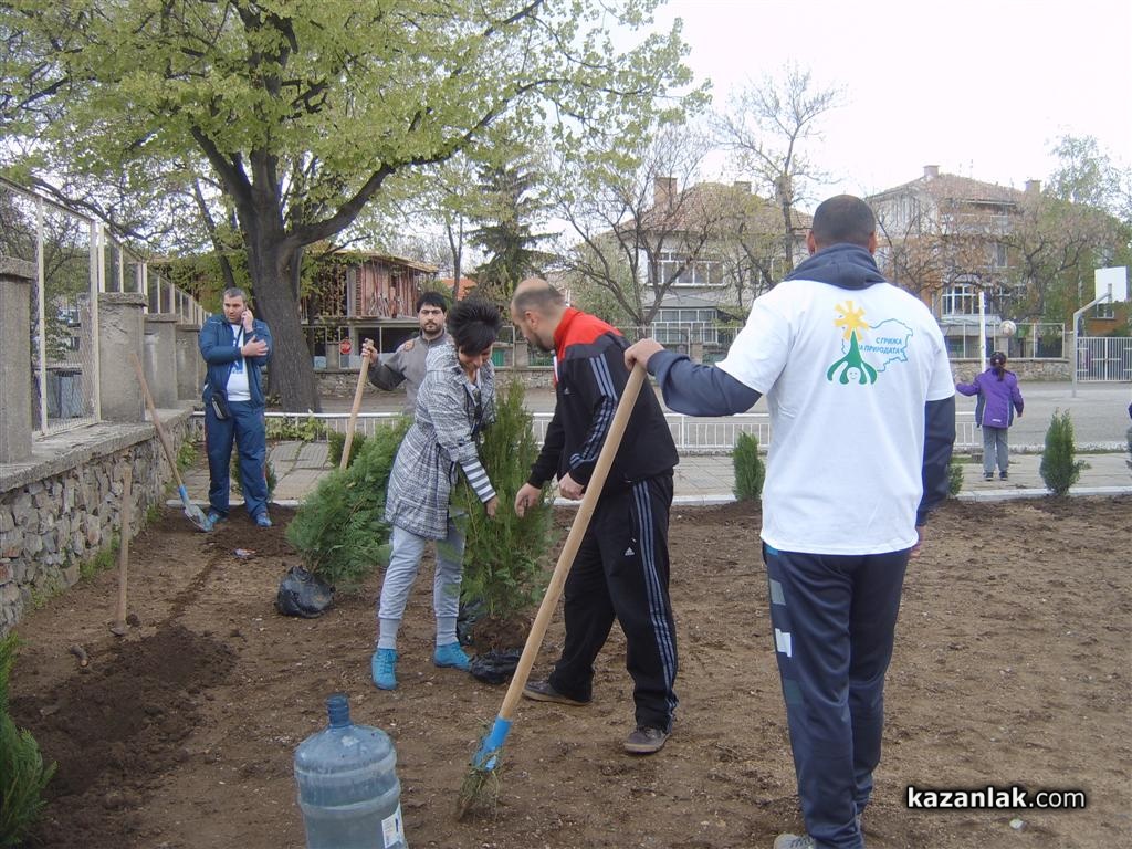 Засаждането на декоративните дръвчета в Казанлък е част от националната инициатива на България без цензура "С грижа за природата", която започна в седмицата на гората. Стартът даде на 5 април в София Николай Бареков и кампанията продължи със засаждане на дръвчета в цялата страна. В Стара Загора миналата събота ББЦ засади 33 туи и 1 кедър, висок около 2,5 м. на входа на парк "Аязмо".