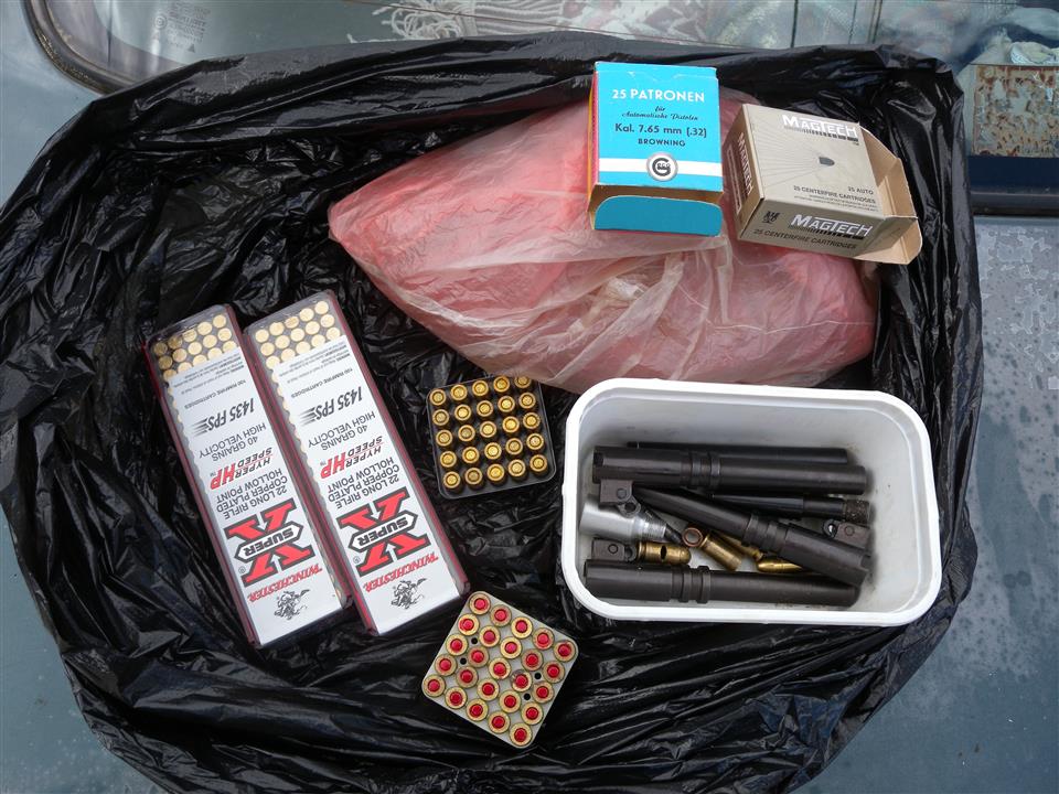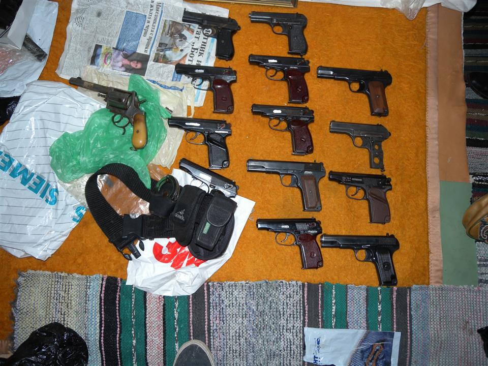 Иззети са: 5 броя пистолети и револвери; 13 броя подготвени за преработка пистолети; 4 броя пушки и карабини; 18 броя цеви, 7 от които за автомат „Калашников”; около 2000 броя боеприпаси с различен калибър; заглушители и оптика за снайперско оръжие. Намерени и иззети са и голямо количество основни части и компоненти, необходими за сглобяване на автомати „Калашников”, както и голямо количество части и компоненти за оръжия.