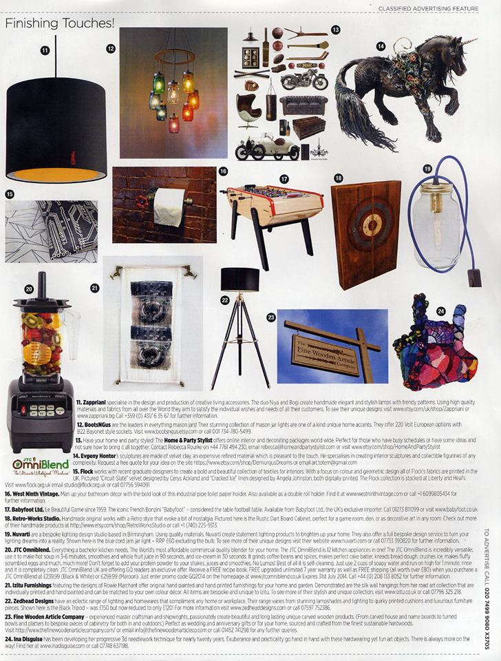 Но новината днес е, че за казанлъчани техните абажури през юли ще научат и на Острова. За работата на казанлъшките артисти ще разкаже в юлския си брой списание GQ magazine (Gentlemen's Quarterly) - мъжко списание със съвети за стил, мода за мъже, забавления, секси жени и коли, разбира се.