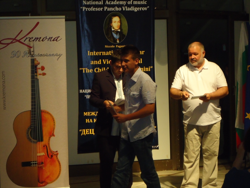 Една от големите награди на конкурса беше майсторска класическа китара предоставена от изпълнителния директор на фабрика „Кремона” г-жа Елена Гамова. Преподавателят по класическа китара Стефан Христов връчи наградата на Йоана Савова Тихолова от гр. Балчик.