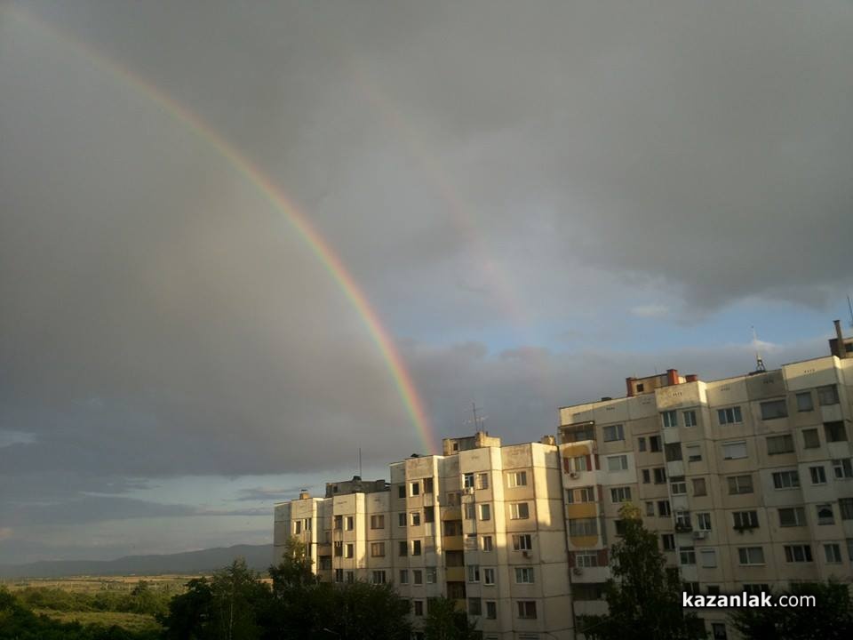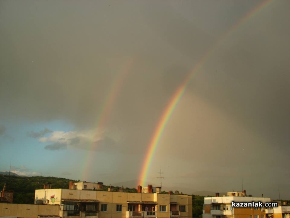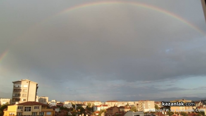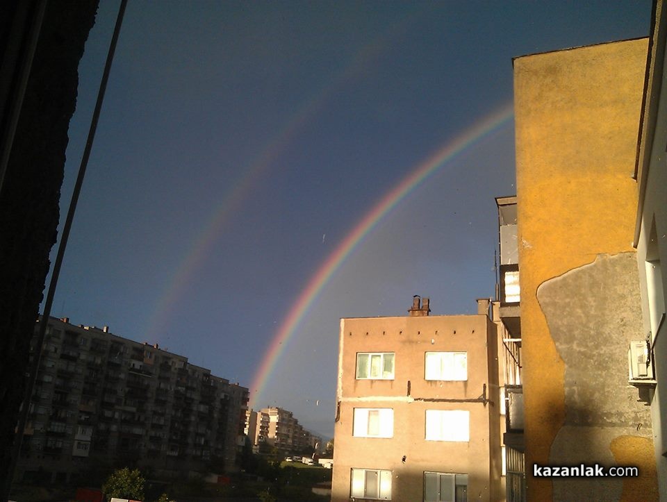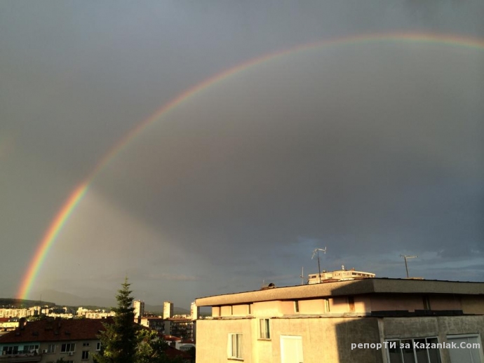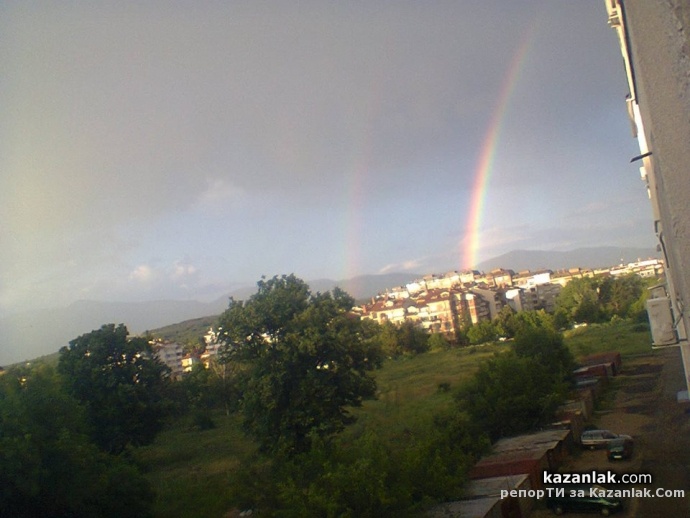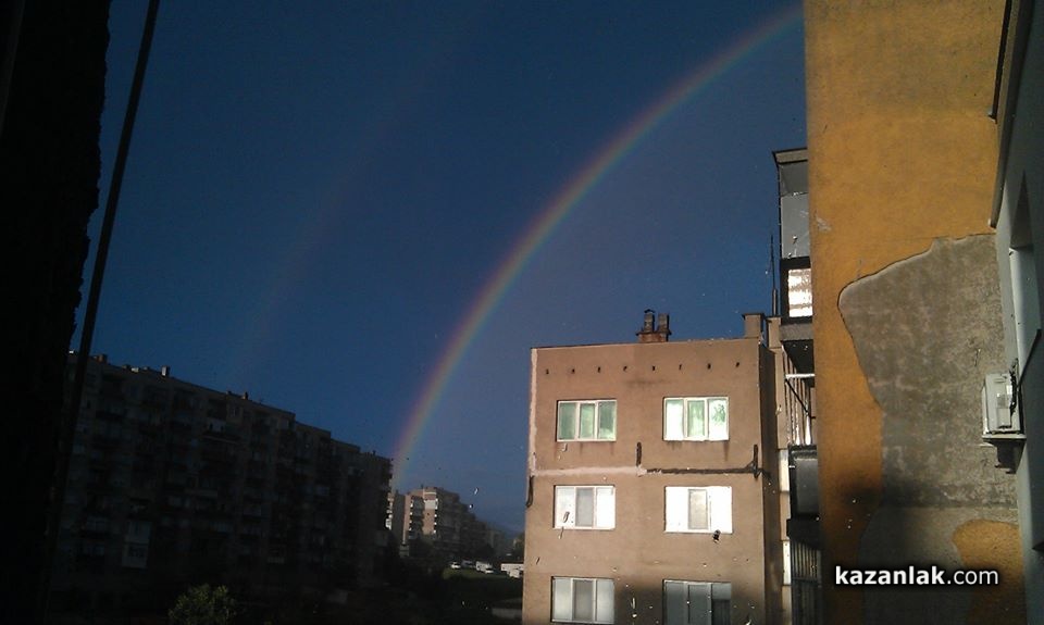 Тази вечер десетки казанлъчани ни изпратиха снимки на феноменална двойна дъга, която се появи над Казанлък в късните часове, дори в сумрака. Подобен феномен – двойна дъга е имало и в Ямбол и в други градове на България тази вечер.