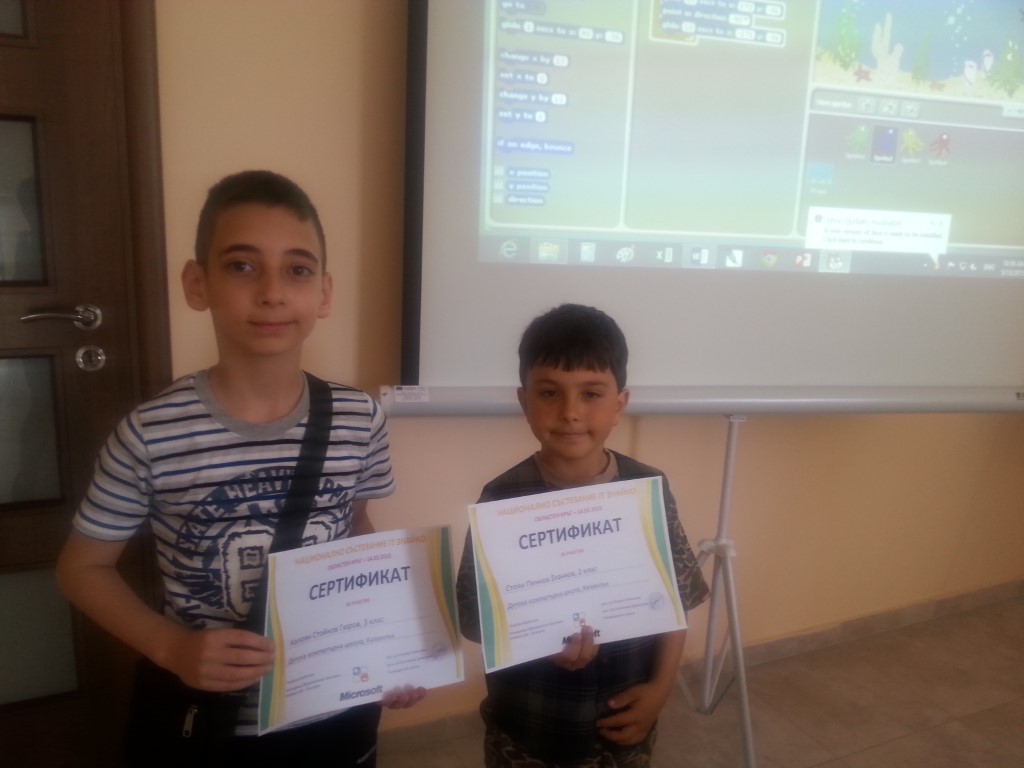 Детската школа по програмиране приключва учебната година на 29 май. Равносметката е програмиране с език LOGO и SCRATCH, експерти в PowerPoint и Word, супер художници с Paint, аниматори и създатели на игри. Не можем да не отбележим с гордост факта, че софийските деца след нашите ще изучават SCRATCH в организирания от Софтуерния университет курс. Нашите малки програмисти повече от месец го изучават и се забавляват създавайки свои интерактивни истории, игри и анимации.