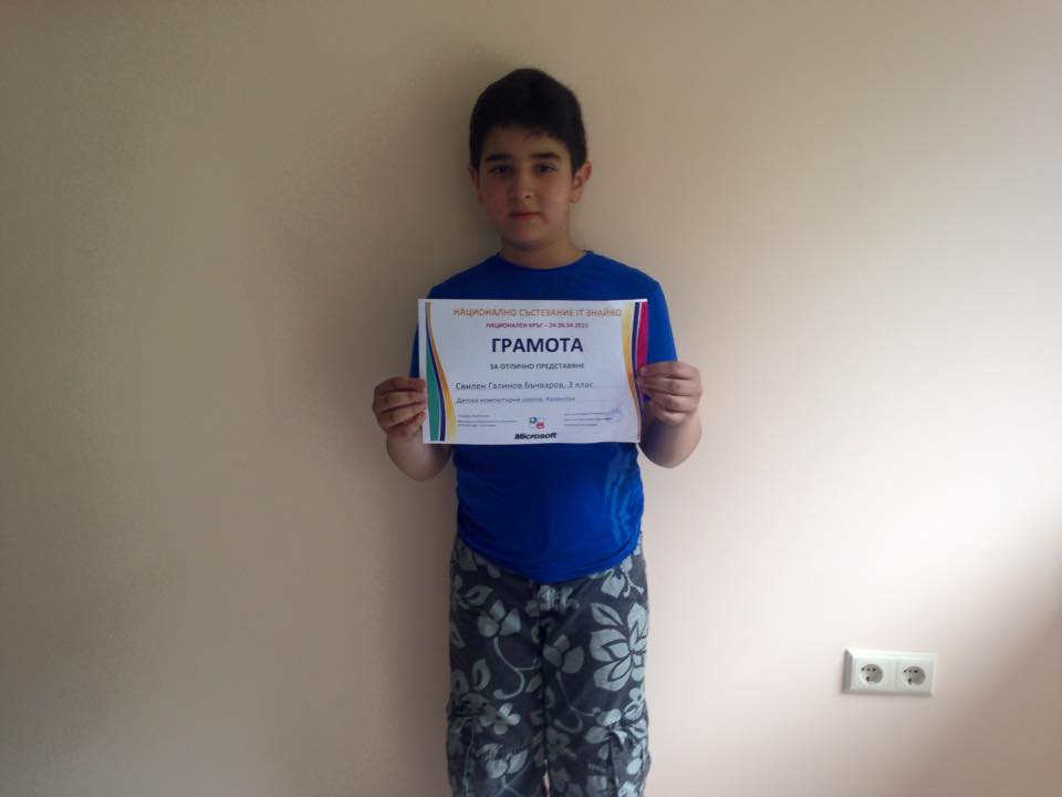 Децата се представиха отлично на състезанието ИТ Знайко. Голяма радост за Центъра по професионално обучение "ИКТ Център" - Казанлък е грамотата, която получи Стоянчо от първия кръг на състезанието по информатика "ИТ Знайко" - републиканско състезание по информационни технологии за деца от няколко възрастови групи. Той е сред първите 20 деца от втори клас за цялата страна. Макар и с по-малко от 7 участника, децата се справиха отлично на втория етап и отново награда – класиран е Свилен на 23 място сред всички третокласници в цялата страна, който се яви на трети финален кръг на същото състезание. Успехите на нашите деца са награда за положения им труд и усърдие и заслуга за тяхната преподавателка в Детската академия по програмиране – Ани Кадиева. Признанието за Детската академия показва, че центърът и преподавателите в него са намерили и вървят в правилната посока за насърчаване на децата за знания по информационни технологии и програмиране. В този дух продължаваме през новата учебна година, като ще има и втора група за начинаещи.