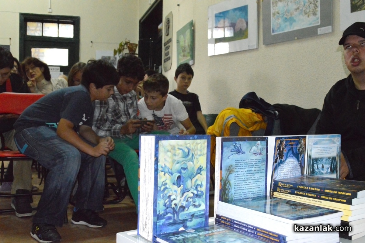 Вчера във фоайето на Библиотека „Искра“ се състоя премиера на най-новите български книги-игри. За премиерата в Казанлък пристигнаха Александър Султанов, известен като Ейдриън Уейн и Георги Караджов.
