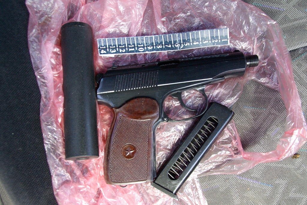 В лек автомобил м.“Опел Вектра” със старозагорска регистрация e намерен и иззет пистолет без идентификационен номер, наподобяващ “Макаров”q с монтирана муфа и шумозаглушител. От лек автомобил м. “Тойота”, със старозагорска регистрация, е иззет пистолет “Макаров” с пълнител и шумозаглушител. При претърсване на различни адреси в Казанлък и с. Горно Черковище са иззети общо 96 броя боеприпаси за пистолет “Макаров”, скрити над бойлер в баня, мобилни телефони, 980 лева, газов пистолет, 13 цеви, различни по калибър и дължина, огнепроводен шнур с дължина 143 см, четири броя боеприпаси, три възвратни пружини, 10 гумени шайби с отвор в средата.