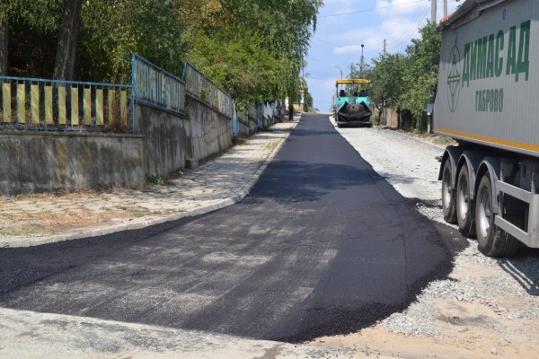 34 765 кв.м ще бъдат общо асфалтираните площи върху 32 улици в населените места на общината. След проведена обществена поръчка фирмата изпълнител на дейностите в селищата на община Казанлък е „ДИМАС“ АД. Фирмата приключи асфалтирането на ул. „Бачо Киро“ в с. Бузовград и днес работи по полагане на асфалтовото покритие на ул. „Митко Палаузов“ (на снимката).