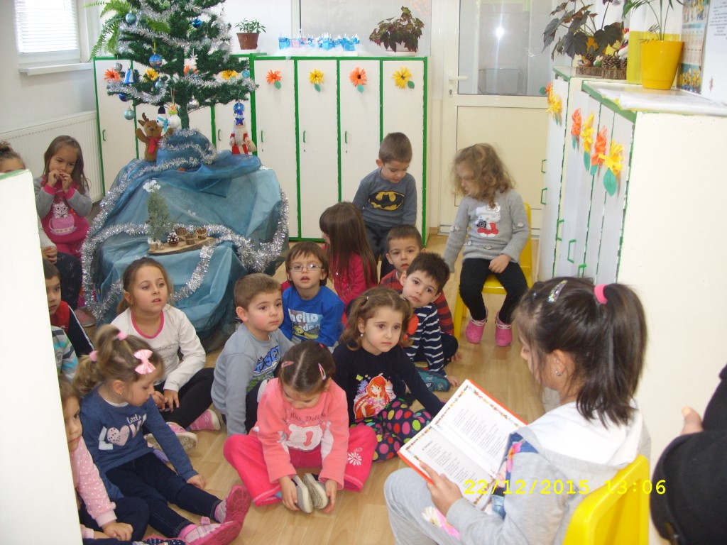 Като продължение на инициативата за насърчаване и повишаване на грамотността и завладени от магията на приказките, в последните дни преди Коледа, децата от ОДЗ „Пчелица” с удоволствие слушаха приказки, четени от своите по-големи приятели, учениците от начален курс при ОУ „Н. Й. Вапцаров” под надслов: „Споделена приказка с приятел”. В приятна коледна атмосфера учениците четяха приказки на малките си приятели, подчинени на предстоящите празници.