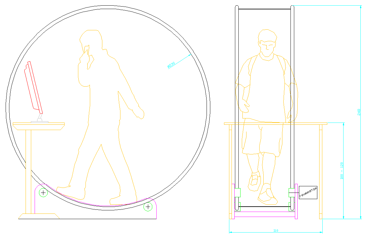 Как обаче функционира то? Генераторът на динамото се задвижва чрез въртящо се колело и така се акумулира енергия, достатъчна за зареждането на мобилен телефон или за гледането на презентация или музикален клип. Към мобилното зарядно са предвидени и светлинни индикатори, които да се активират от движението на колелото и да показват нивото на зареждане на акумулаторните клетки. Използването е изцяло опростено и достъпно за всеки. Някои от хората в неравностойно положение няма да могат да ползват пълния капацитет на устройството, но акумулираният първоначален заряд е достатъчен за използването му за най-малко час преди да има нужда колелото на динамото да се задвижи. В допълнение, има възможност и за ръчното задвижване на колелото чрез лостова система. Дори да не зареди устройство, човекът, който ползва динамото, може поне да потренира в необичайна и увлекателна обстановка.