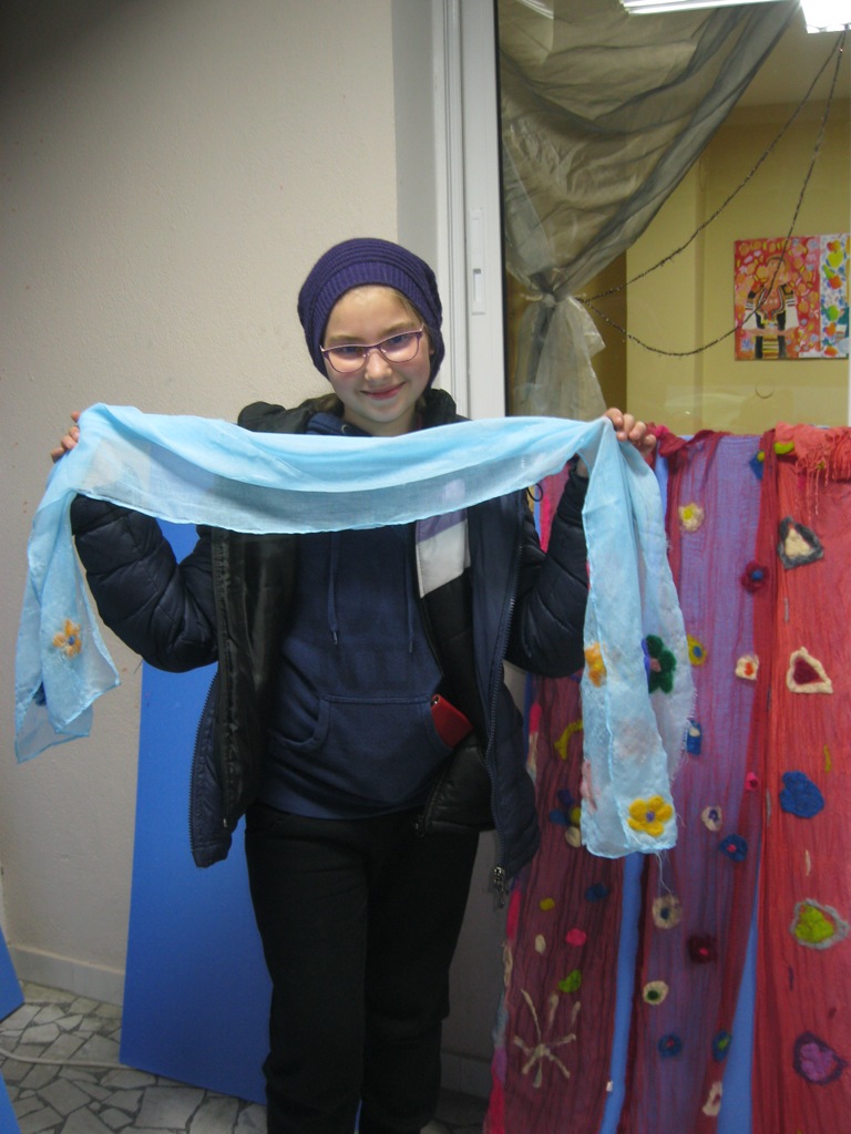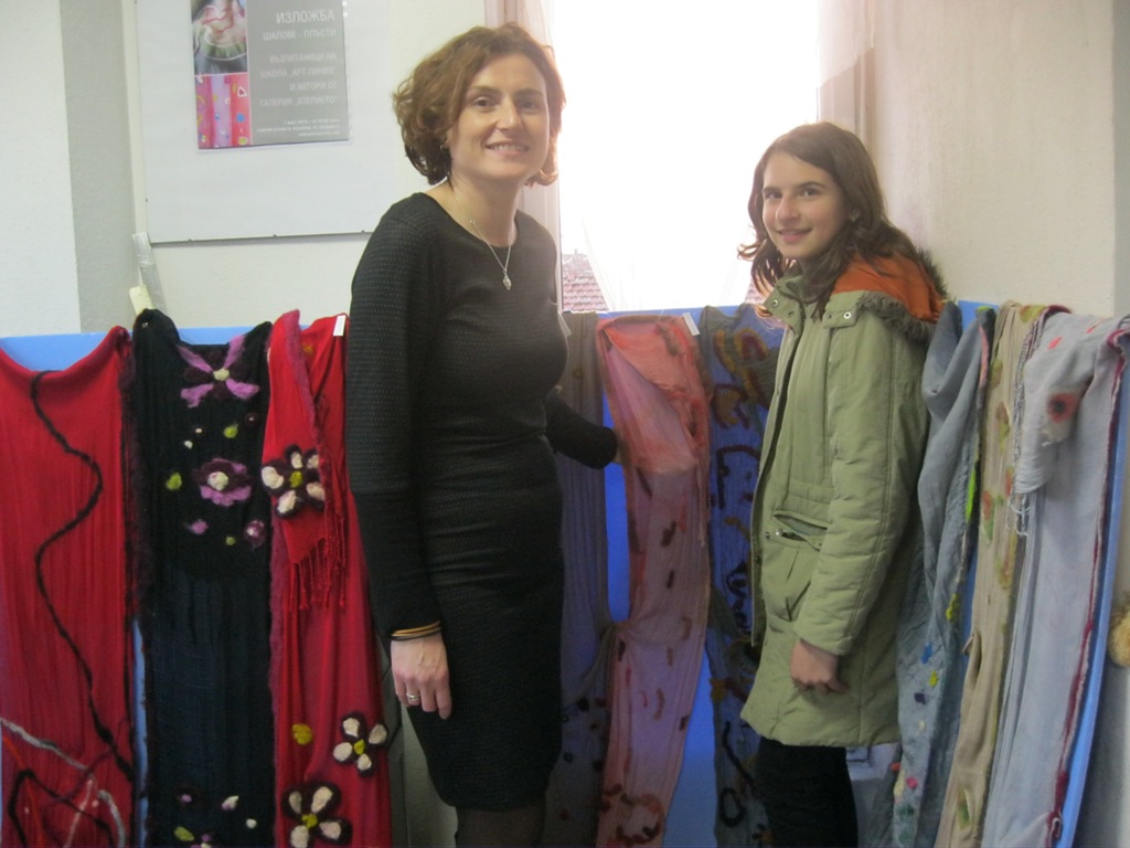 Втората изложба озаглавена „За мама" бе един подарък за майките на малките деца от школа „Арт линия“. В нея бяха показани изработените от сръчните ръце на децата шалове- плъсти.