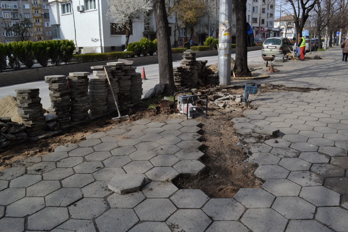 Акцент в дейностите на Общинското предприятие тази година ще бъдат ремонтите на тротоари и крайпътни настилки в града. Ремонтни дейности на тротоарната настилка вече са започнати по бул. „Александър Батенберг“, в посока центъра, след „Стара река“. Там се подменят старите тротоарни плочки, които са счупени, или разместени от корените на дърветата.