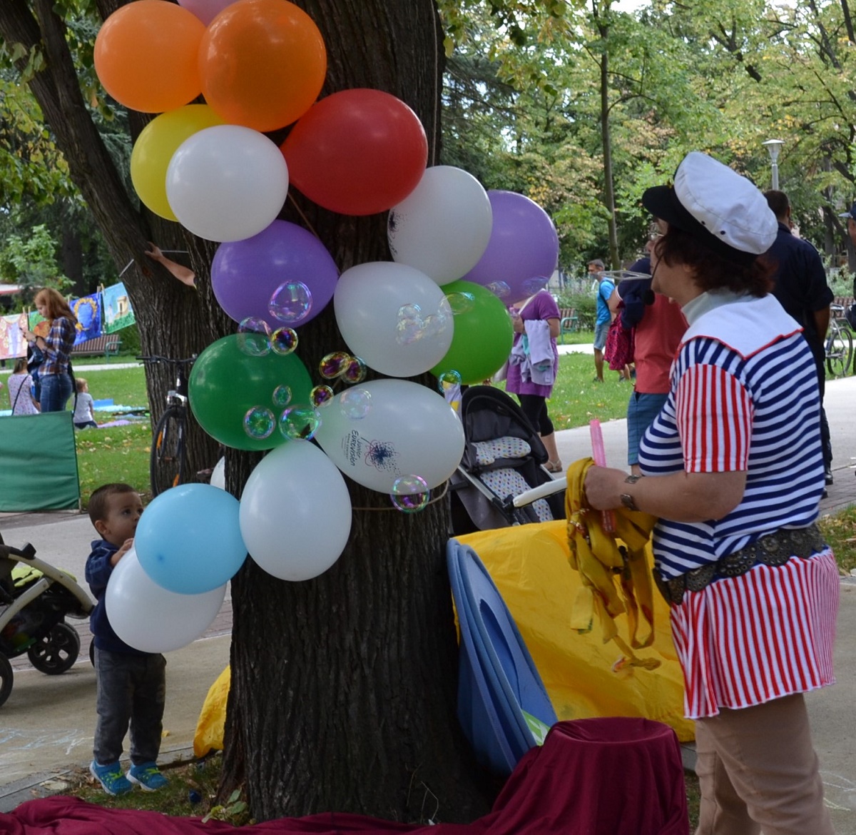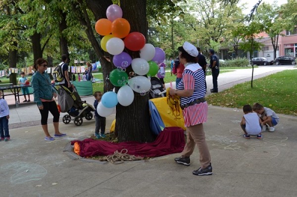 В различни части на красивия парк бяха оформени детски кътове за занимания на малчуганите – сцена с песни и танци, стрелба с лък, тенис на маса, занаяти, детски рисунки, рисуване по ръчички като бодиарт за по-малките, йога за всички възрасти и много други.